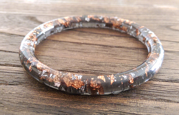Blue Wide Resin Glitter Bangle, Blue, Aqua Green Resin with Silver and Rosegold Leaf. Handmade Bangle 67mm inner diameter