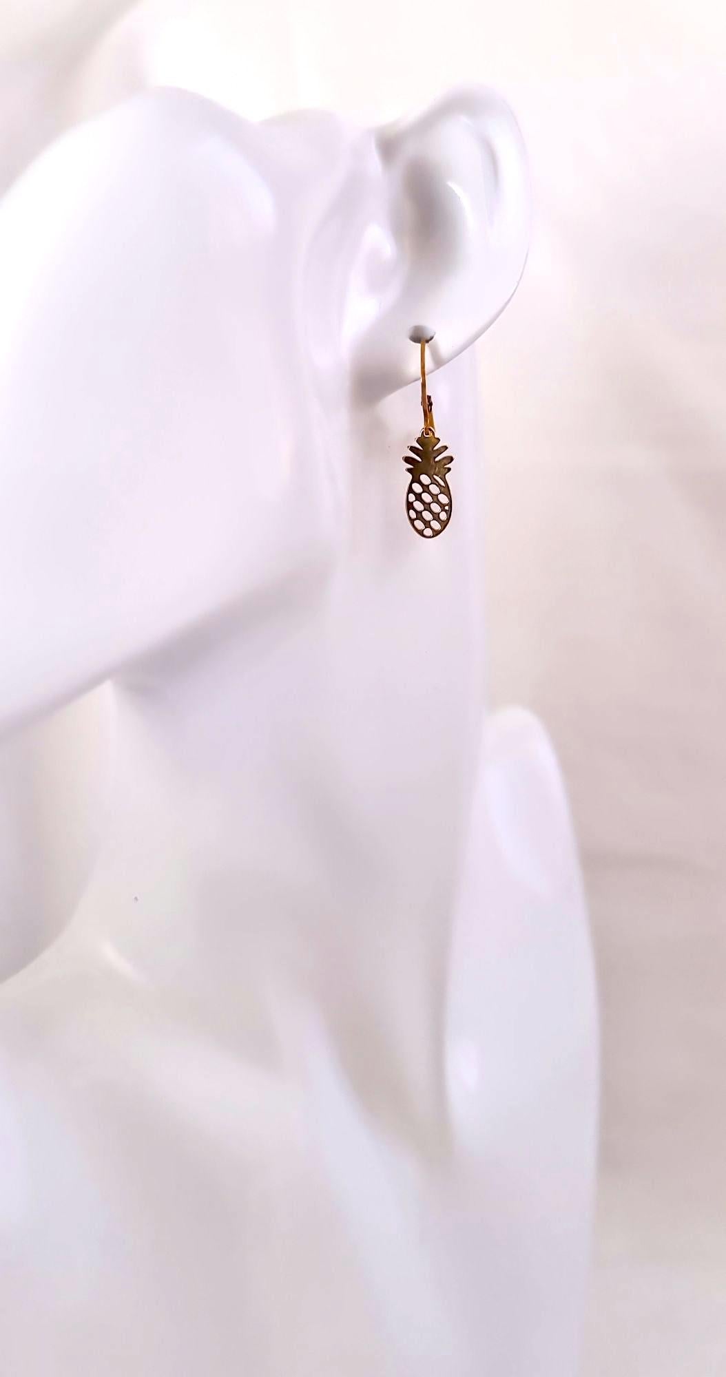 Exotic 18k Gold PVD Pineapple Leverback dangle earrings. Can wear everyday or for special occasions.Materials: 316 Stainless Steel, ION Plating, Real 18k Gold Plated Vacuum sealed. Hypoallergenic Colour: gold 18k PVD