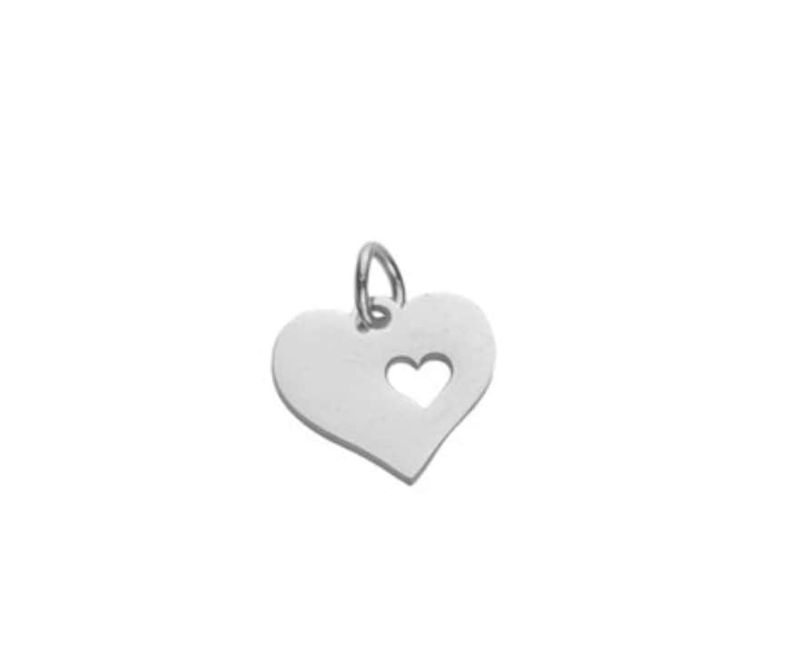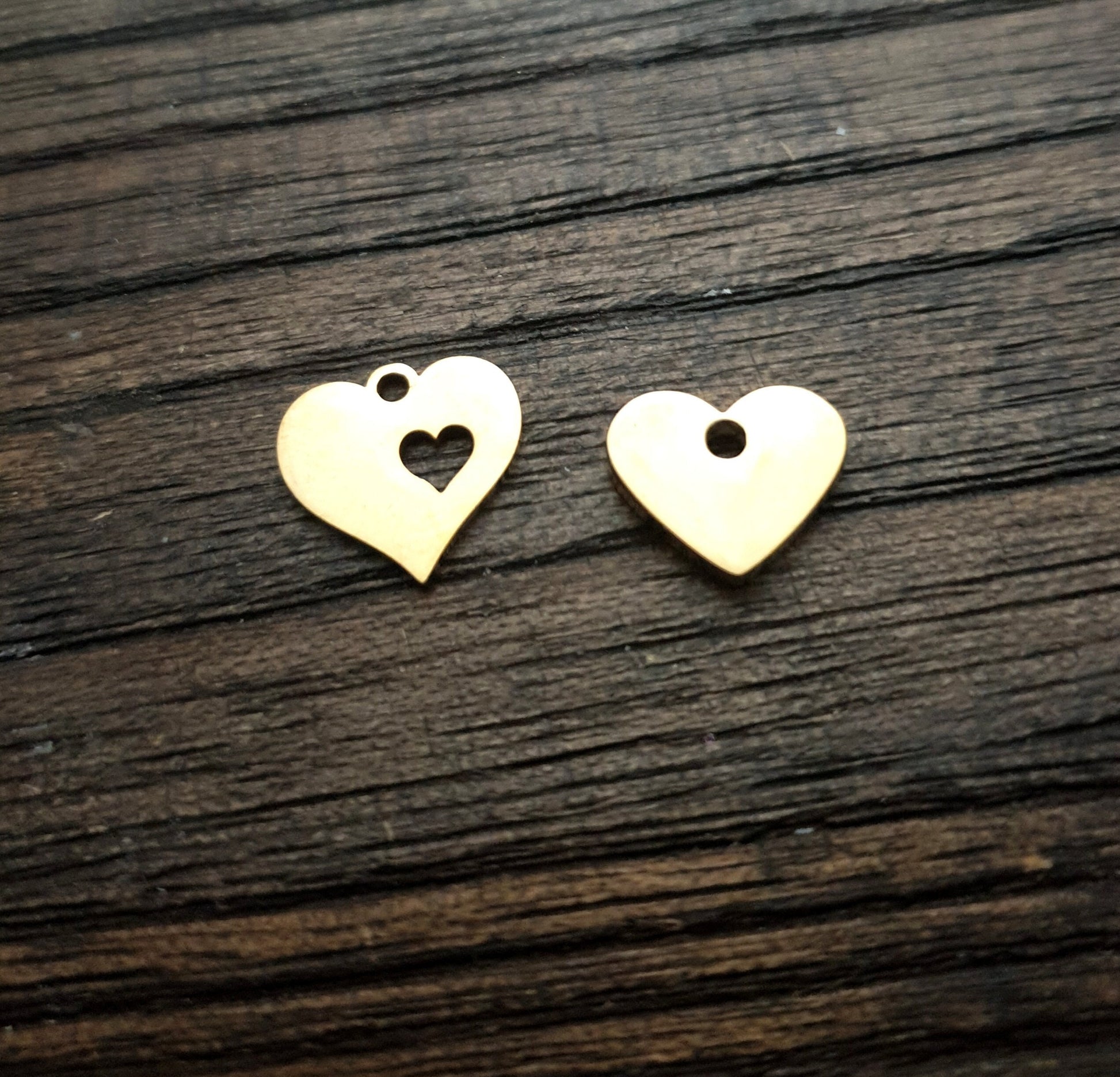 Stainless Steel Heart Charms with jump ring.Choose Charm: Small Heart, Heart on Heart