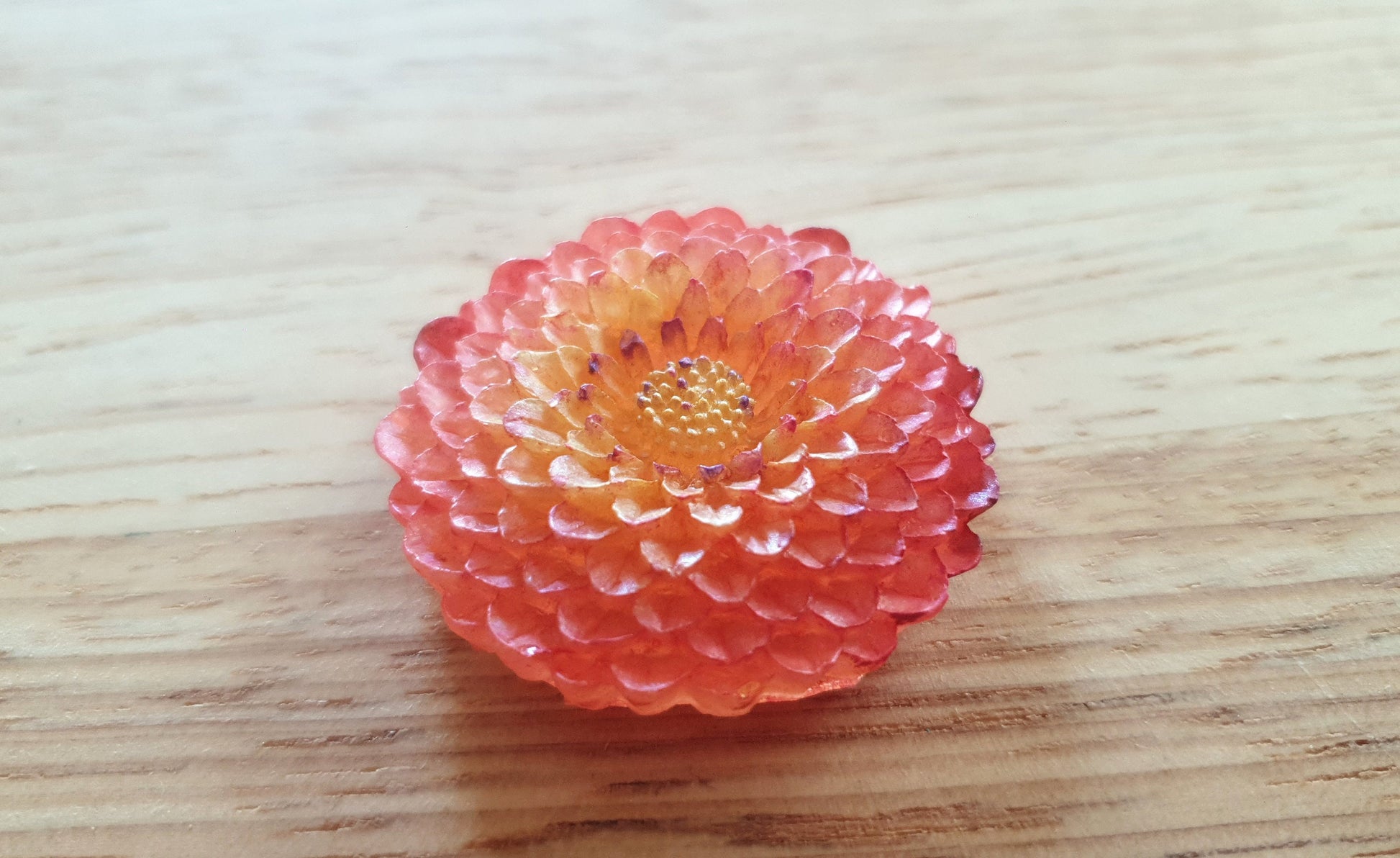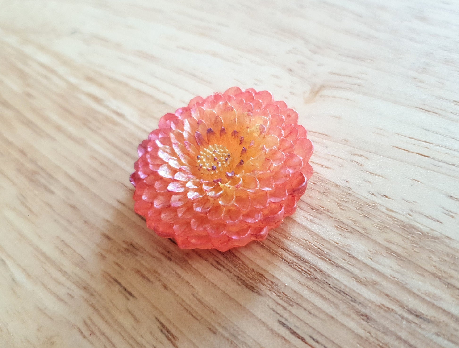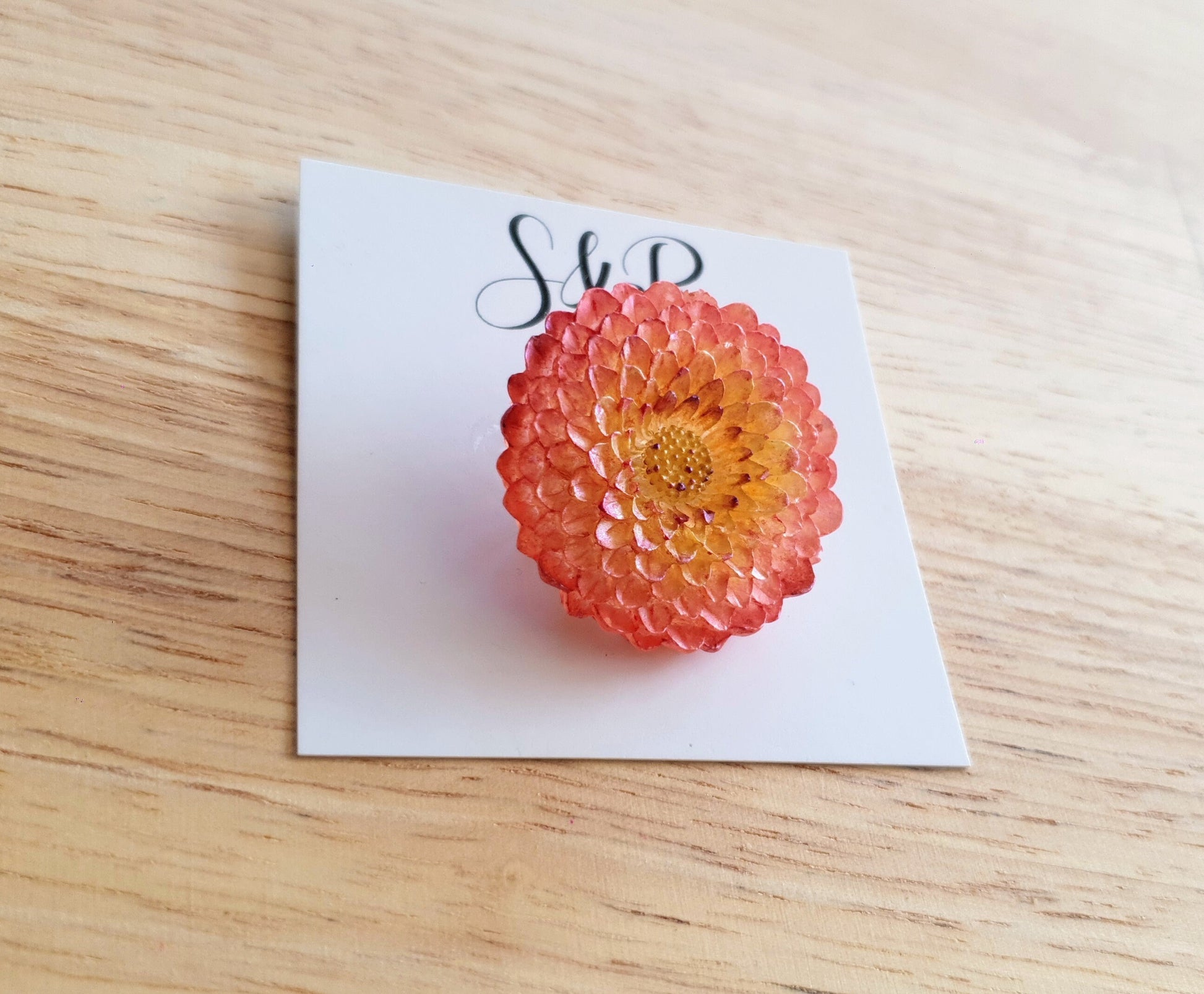Stunning Red Purple Chrysanthemum Flower Pin Brooch.Get noticed with this beautiful unique detailed pin brooch.Colour: red and purple Materials: resin, colour, stainless steel.Size: 35mm x 35mmHandmade, if you would like a different colour please message me and I can make it the coloursyou prefer.