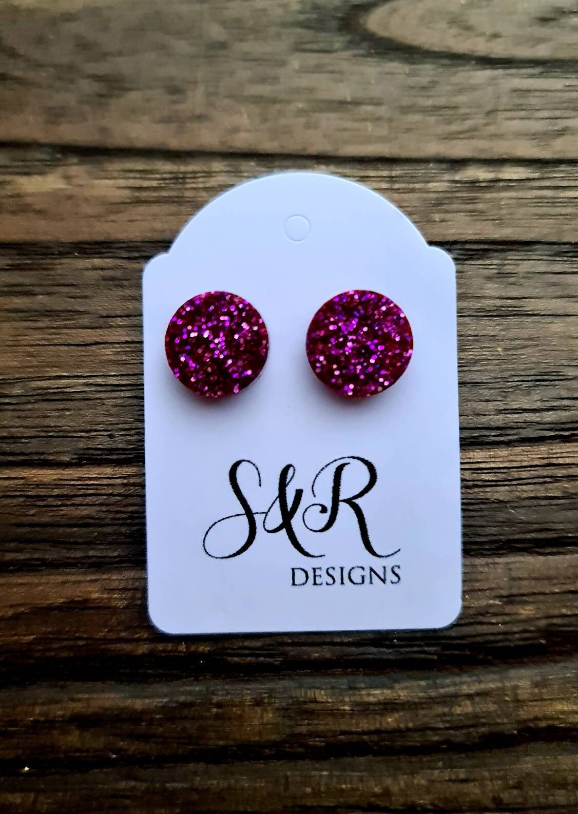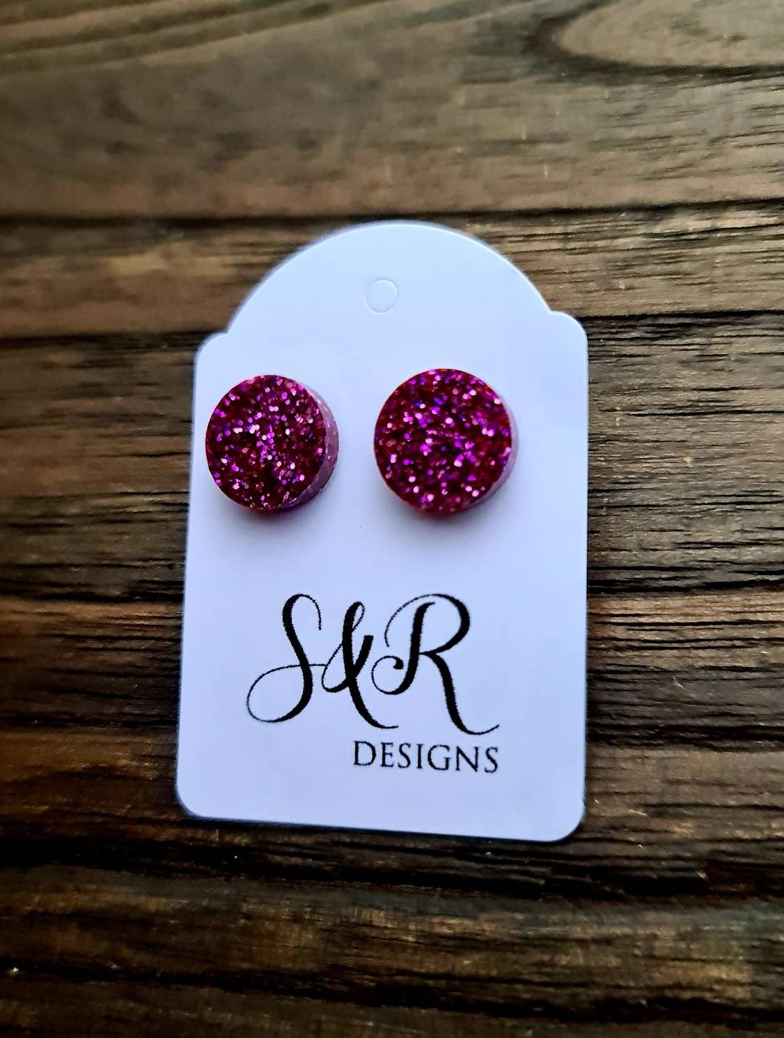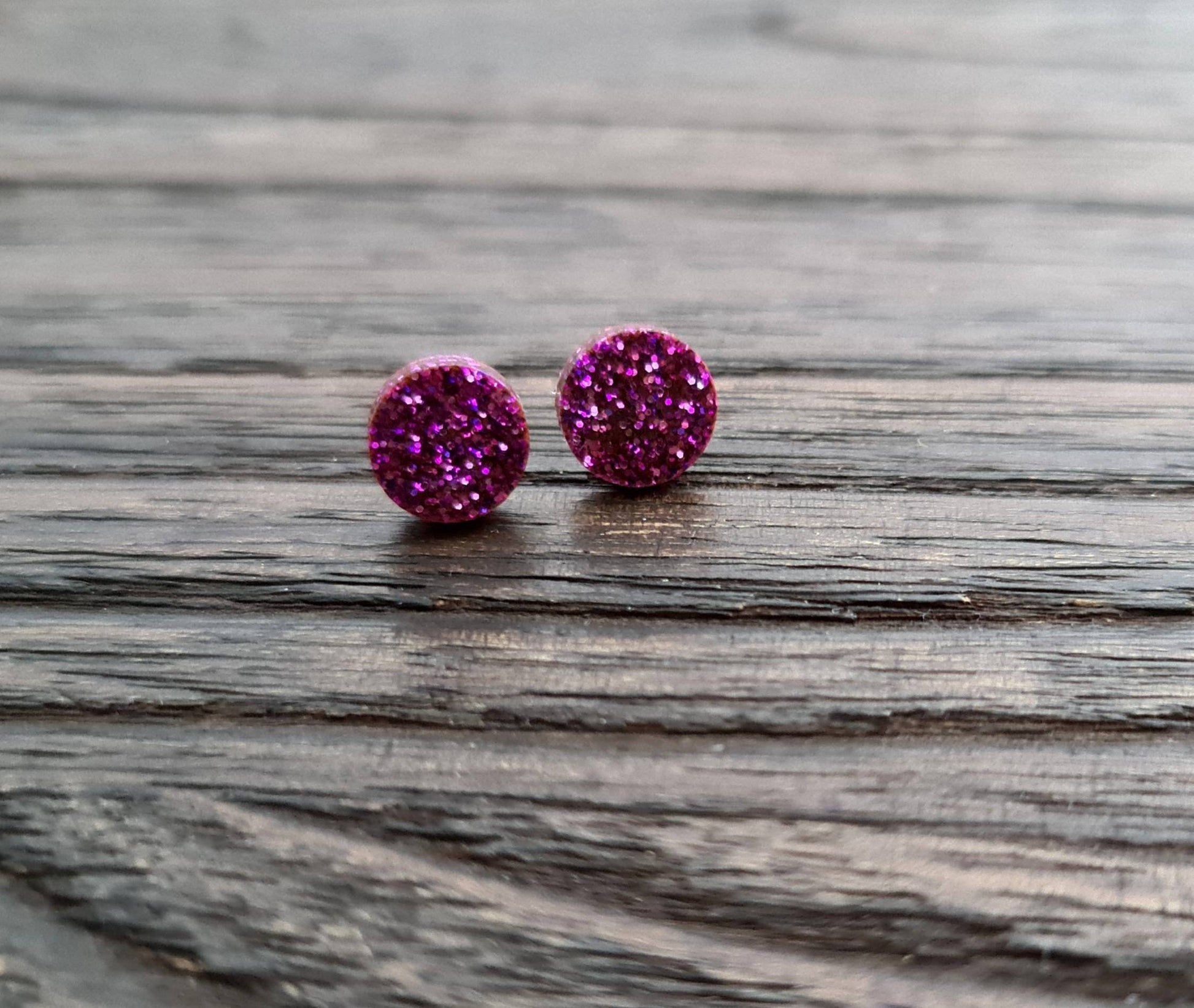 Stunning Circle Dot stud Earrings. Material: Stainless steel, poured resin, glitters and colours.Colour: pink mix glitterSize: 10mm length X 10 mm wide,
