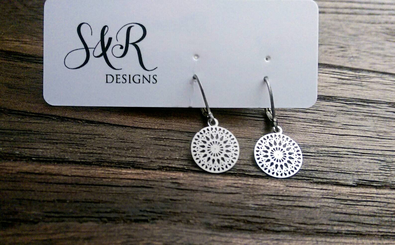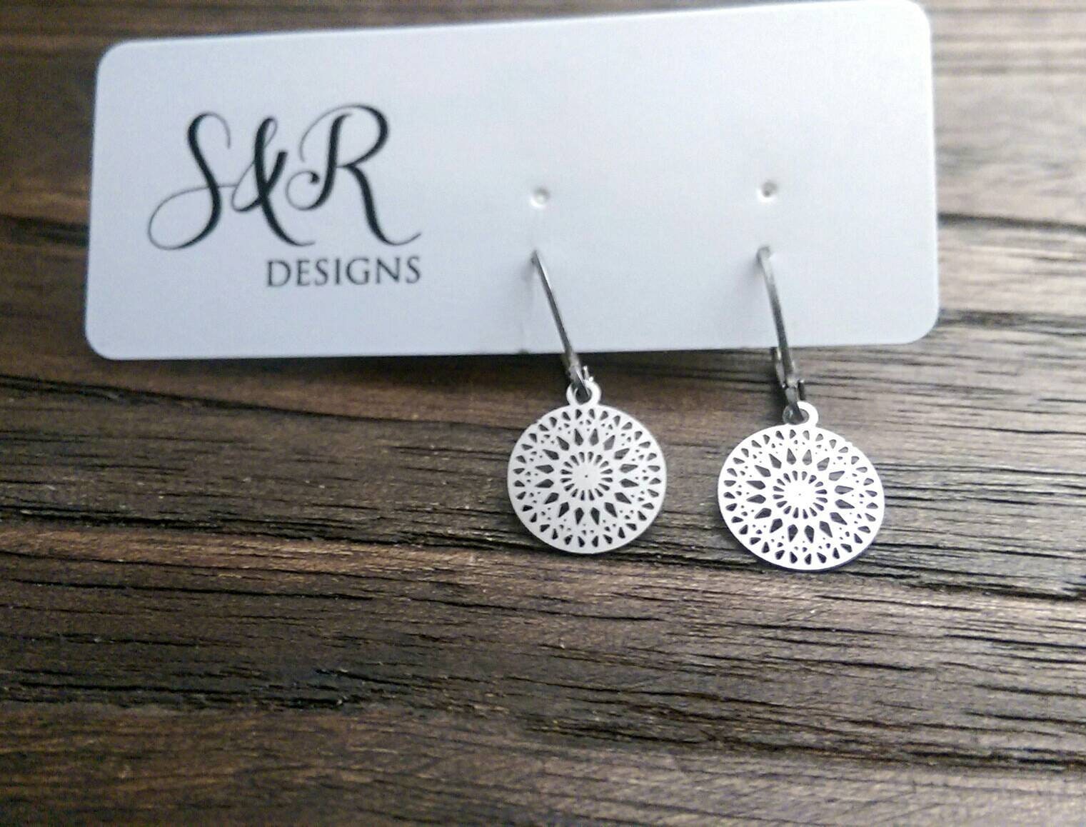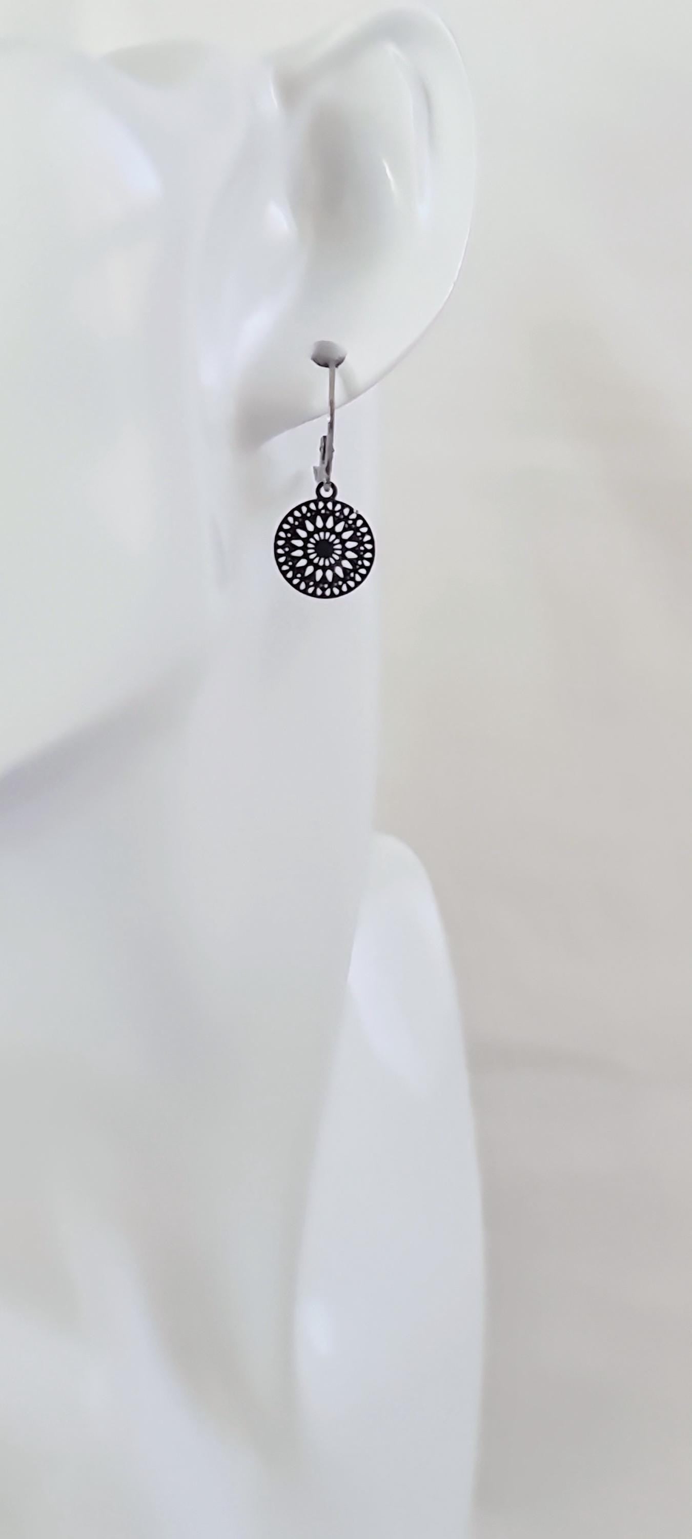 Gorgeous small circle filigree Leverback dangle earrings. Can wear everyday or for special occasions.Materials: Stainless Steel, great for sensitive ears.Colour: silver