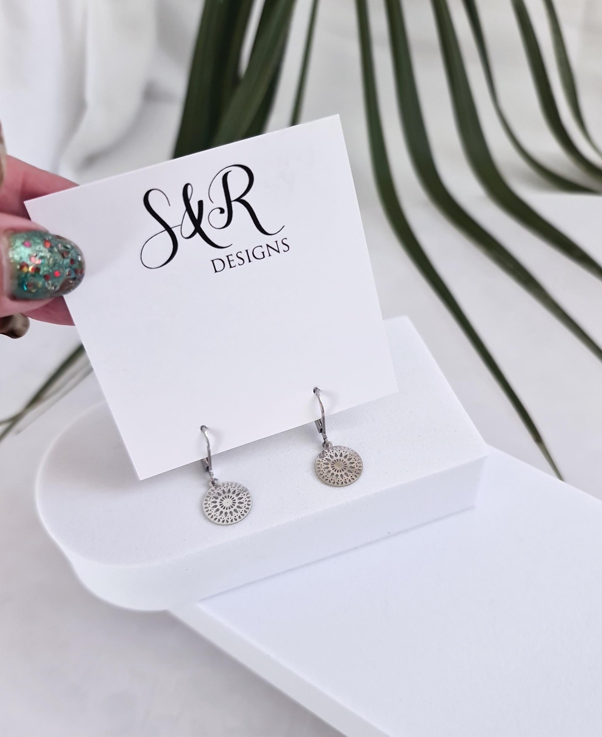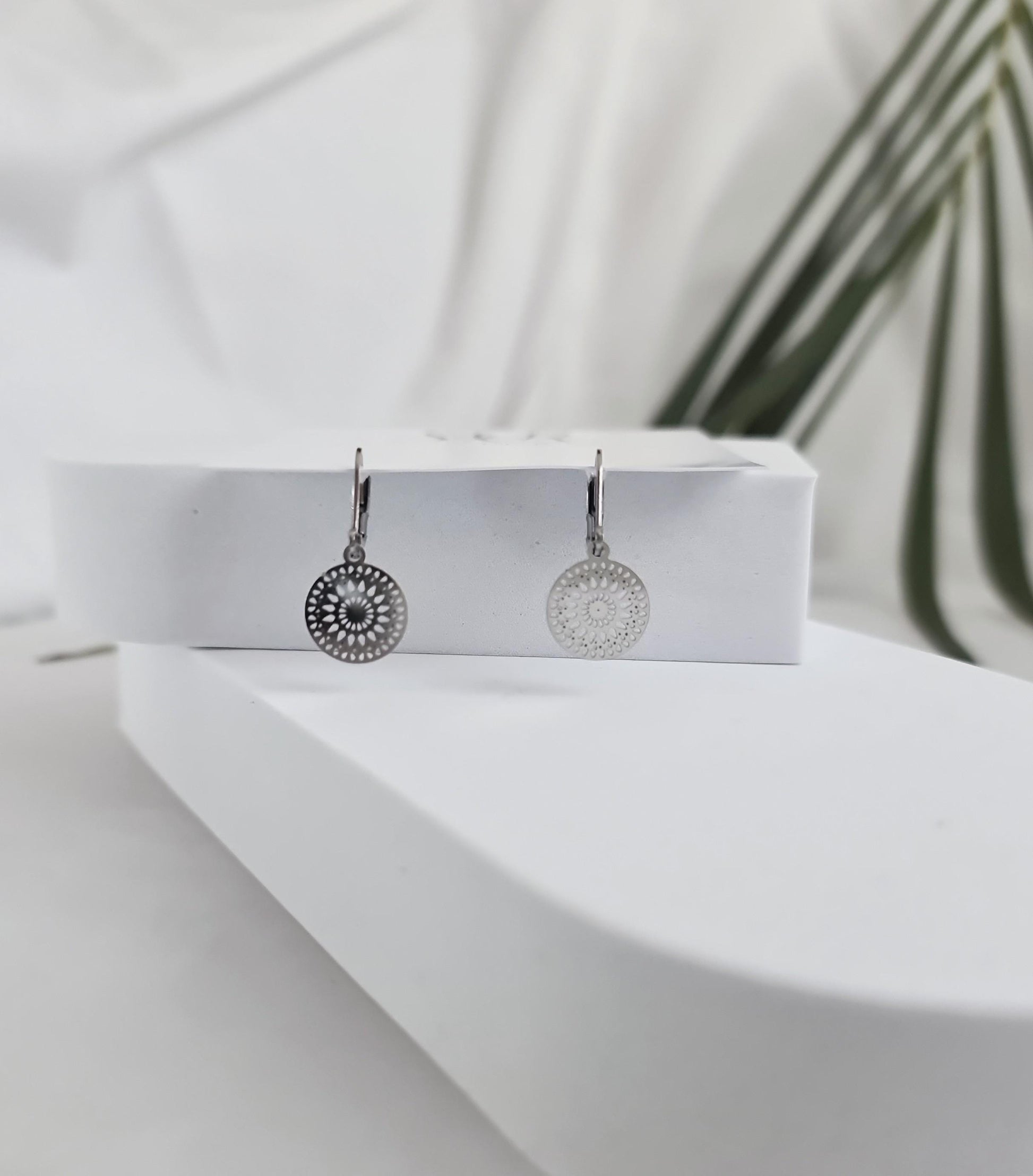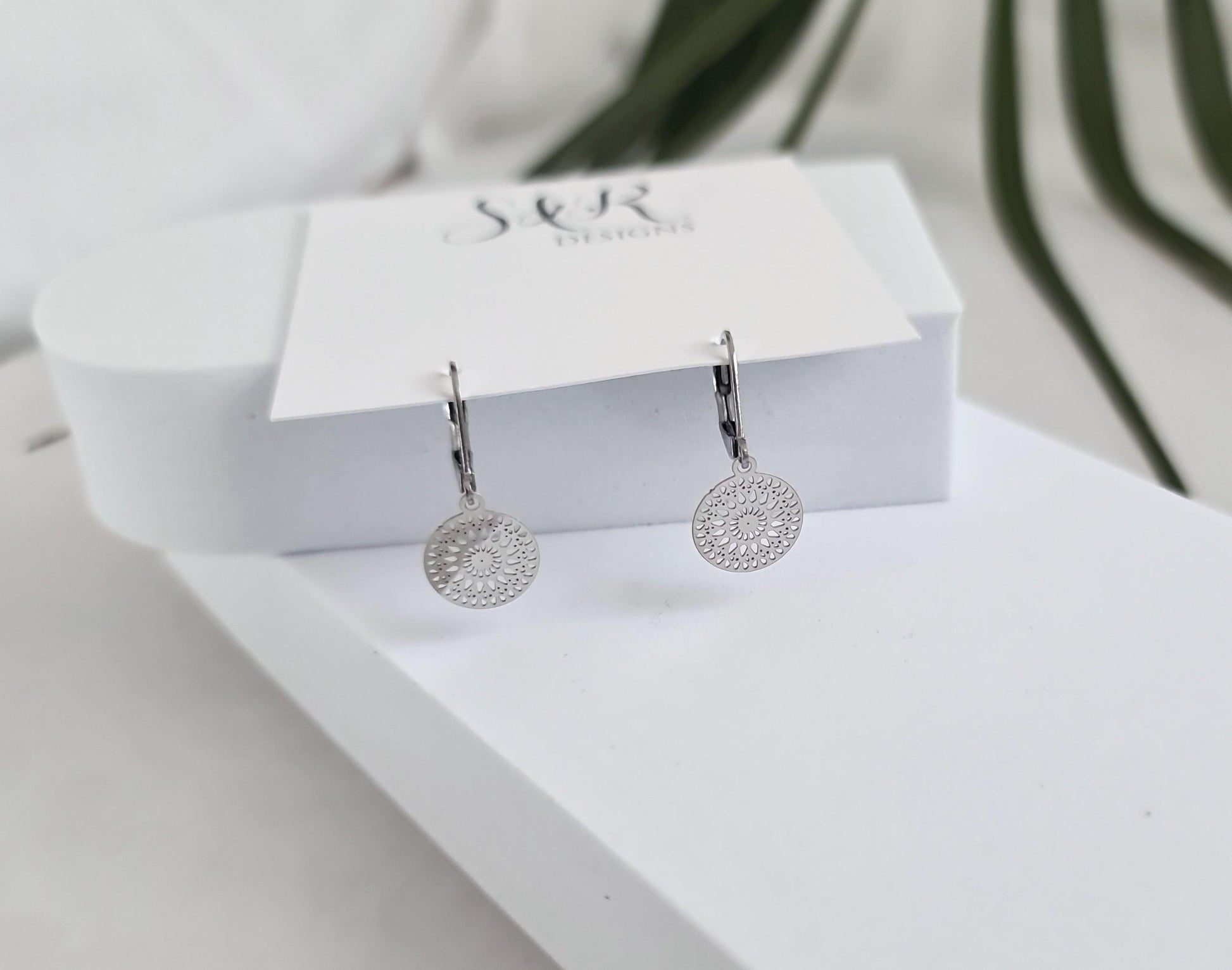 Gorgeous small circle filigree Leverback dangle earrings. Can wear everyday or for special occasions.Materials: Stainless Steel, great for sensitive ears.Colour: silver