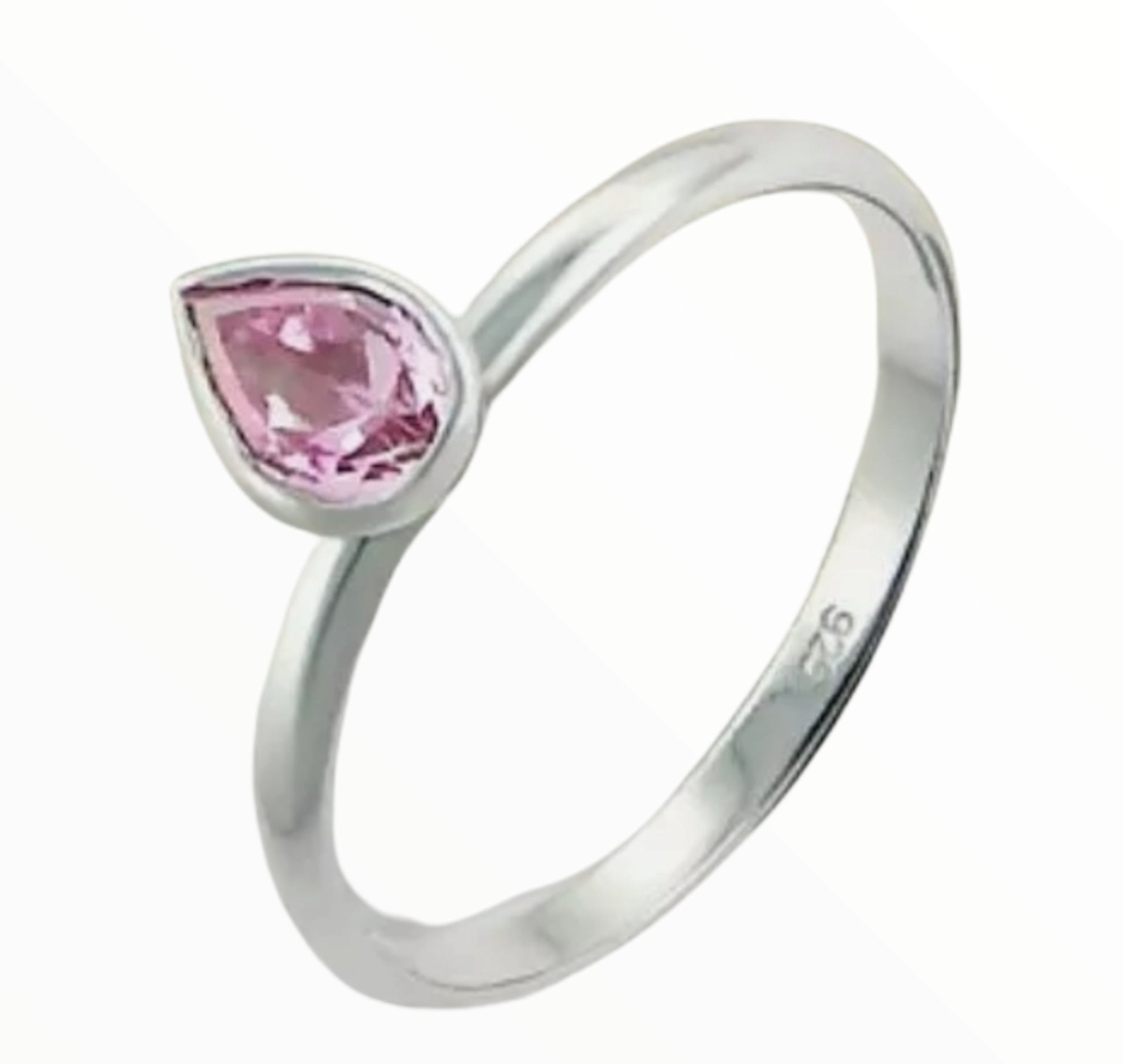 Sterling Silver Pink Cubic Zirconia Teardrop Ring
