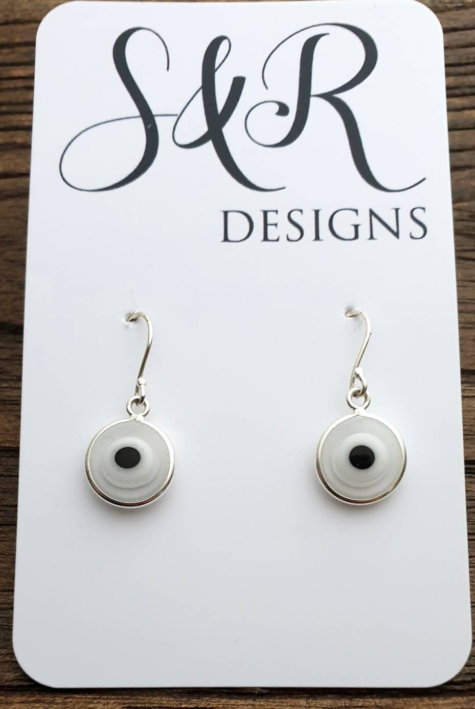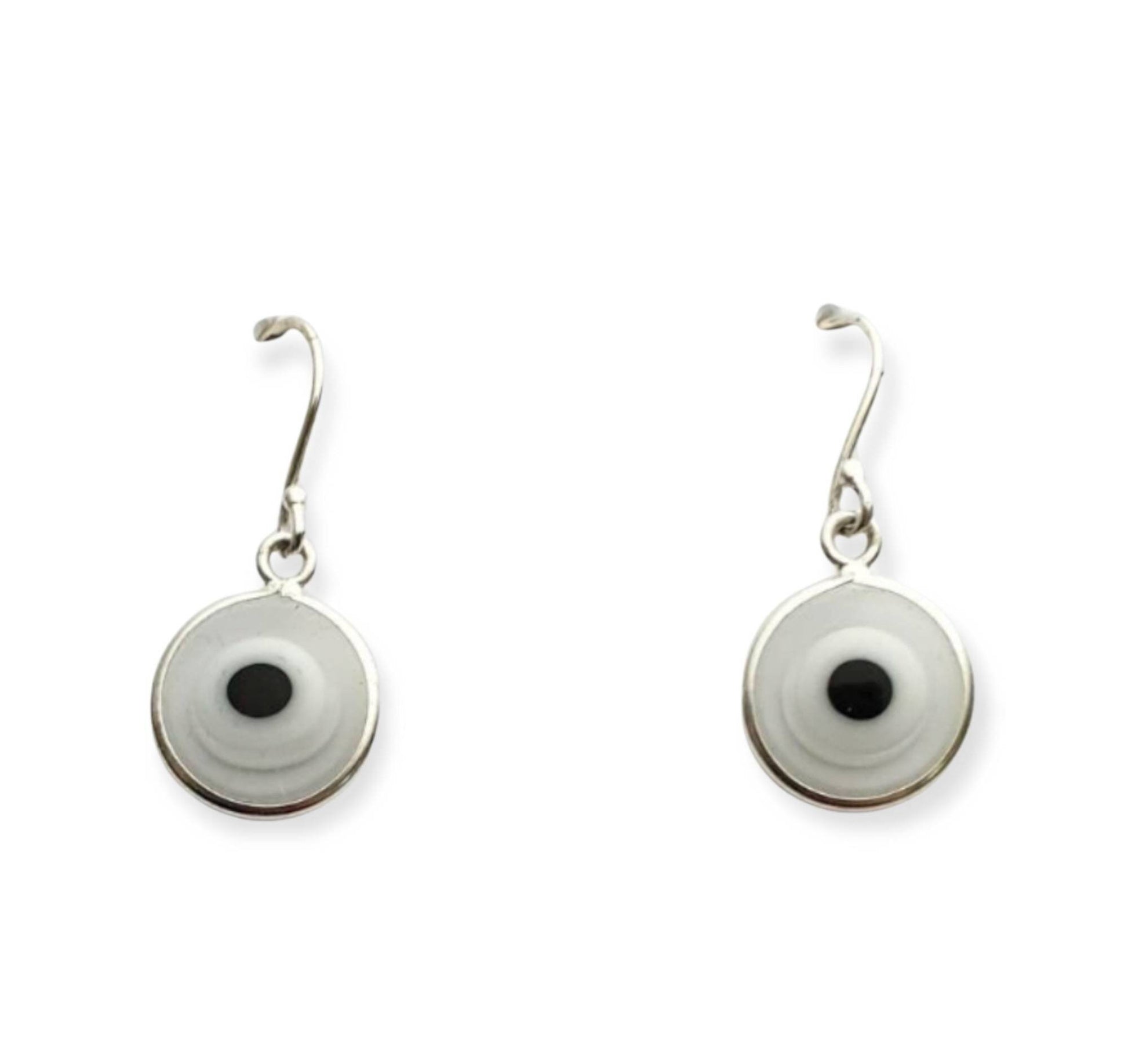 Evil Eye Drop Earrings, Sterling Silver White Evil Eye Dangle Earrings, Mati Dangle Earrings