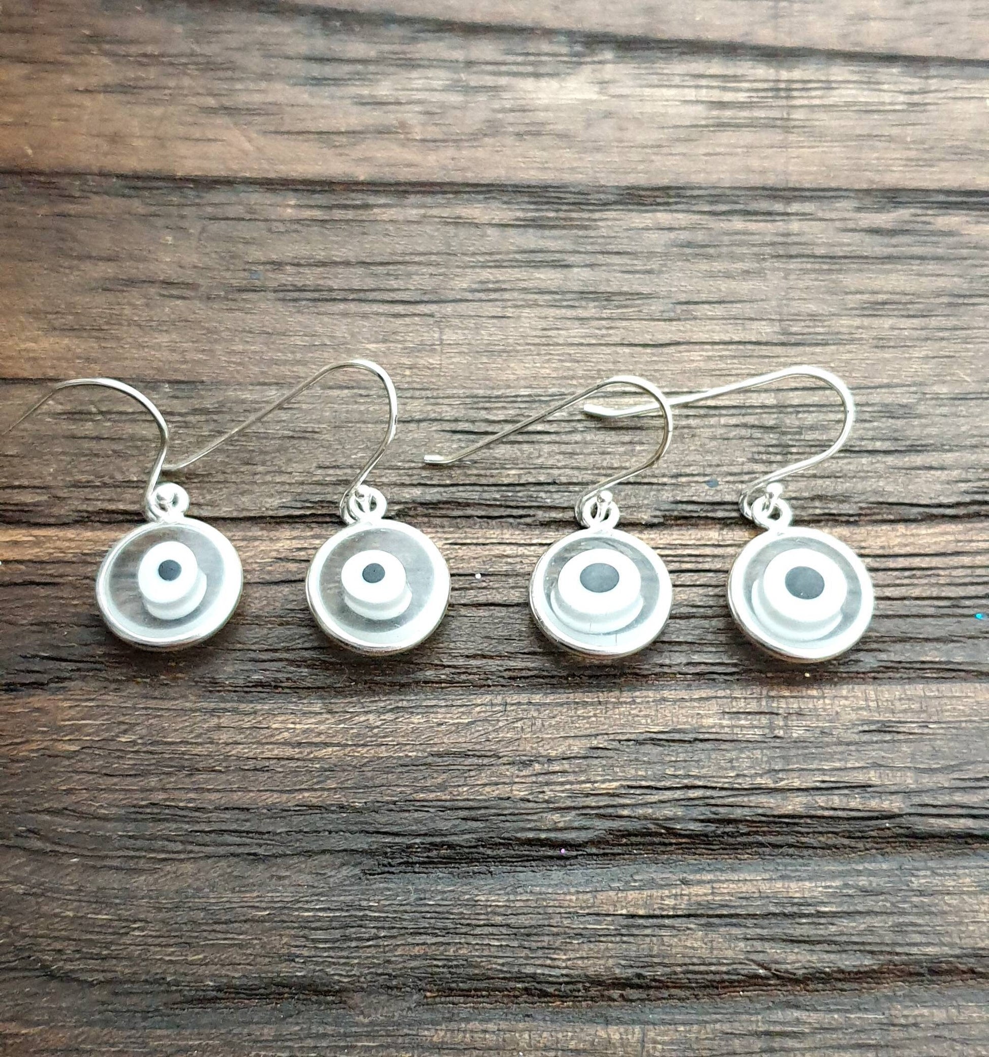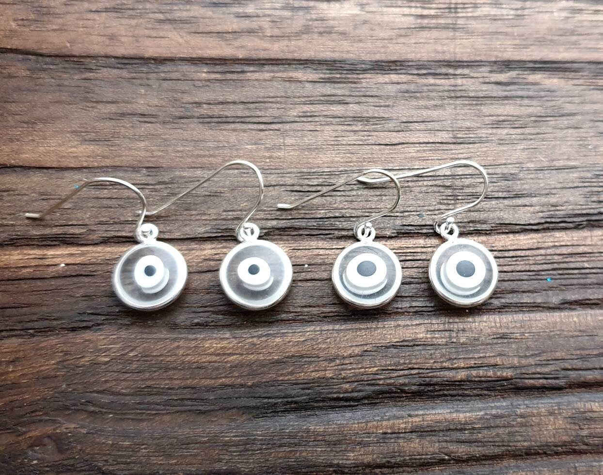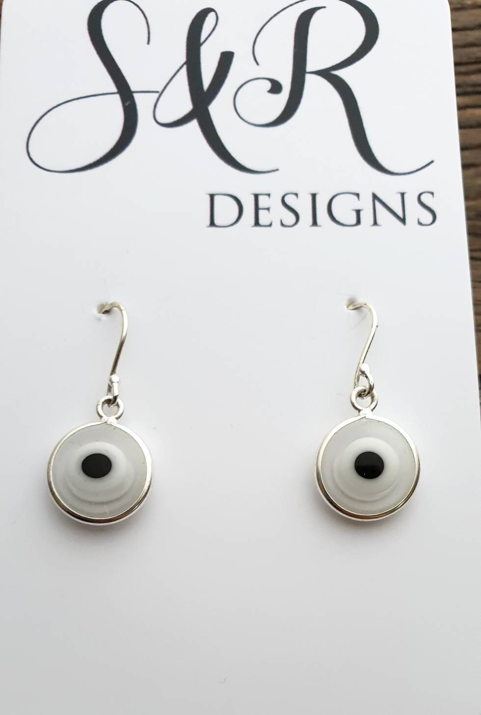 Beautiful Glass Evil Eye Sterling silver dangles. All metal used is made from Sterling silver.Size: 11mm x 11mm, drop length 25mmColour: black and white