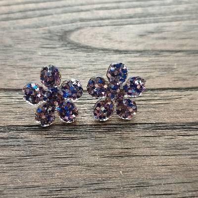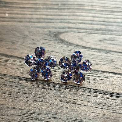 Flower Resin Earrings, Glitter Earrings, Purple Blue Silver Glitter Sparkly Stud Earrings