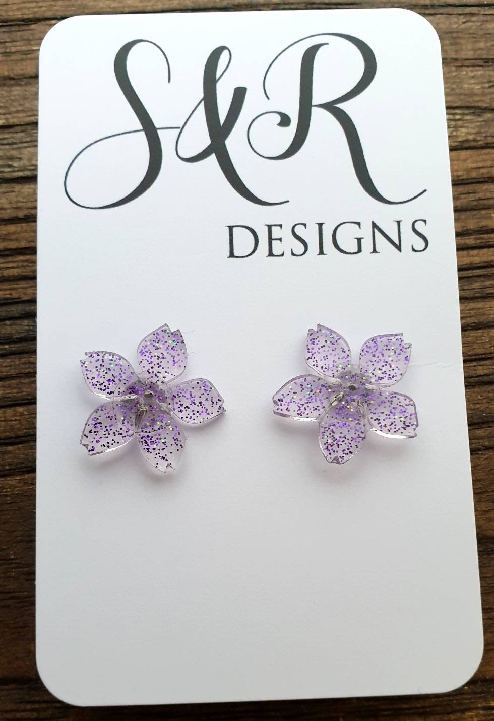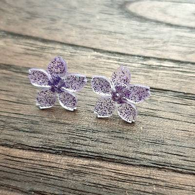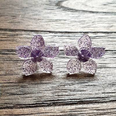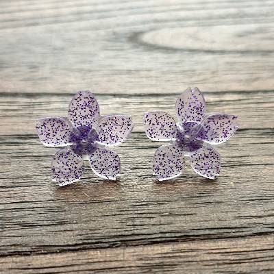Flower Resin Earrings, Purple Glitter Earrings