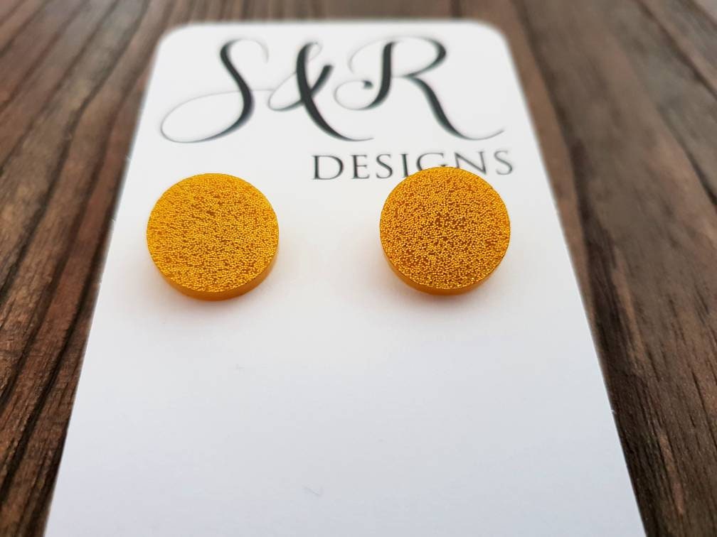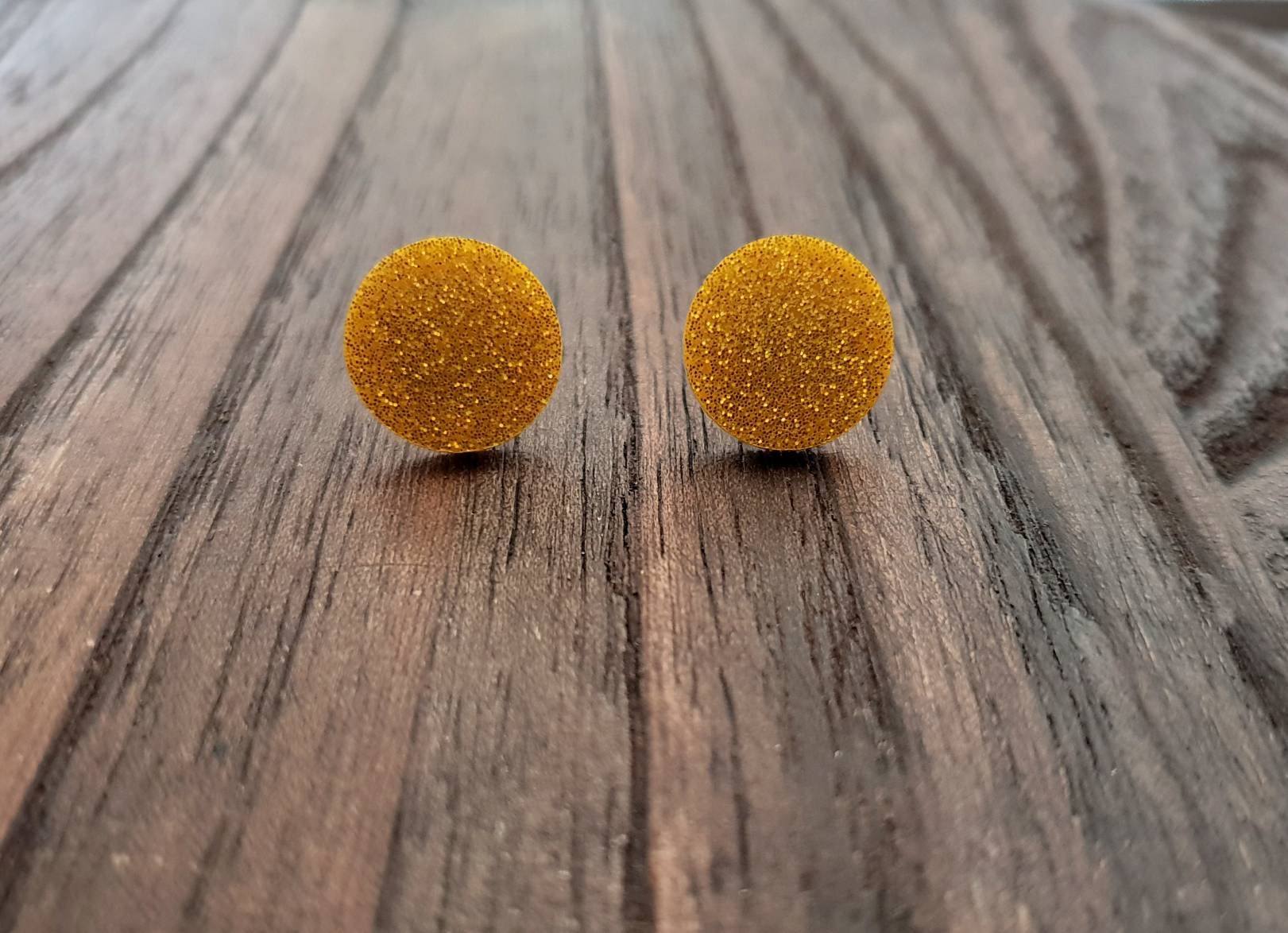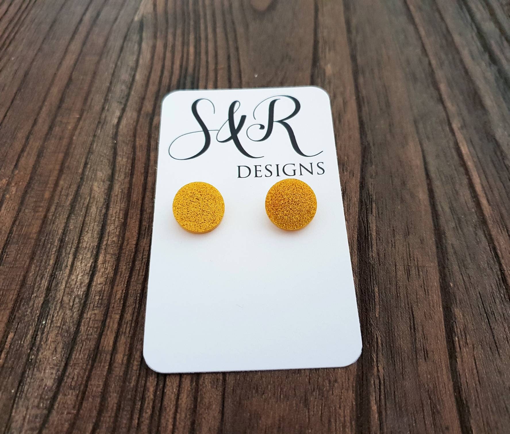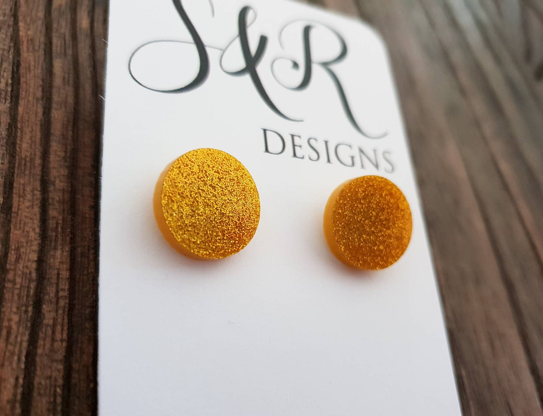 Gold Glitter Circle Stud Earrings, Acrylic Earrings, Stainless Steel Earrings.