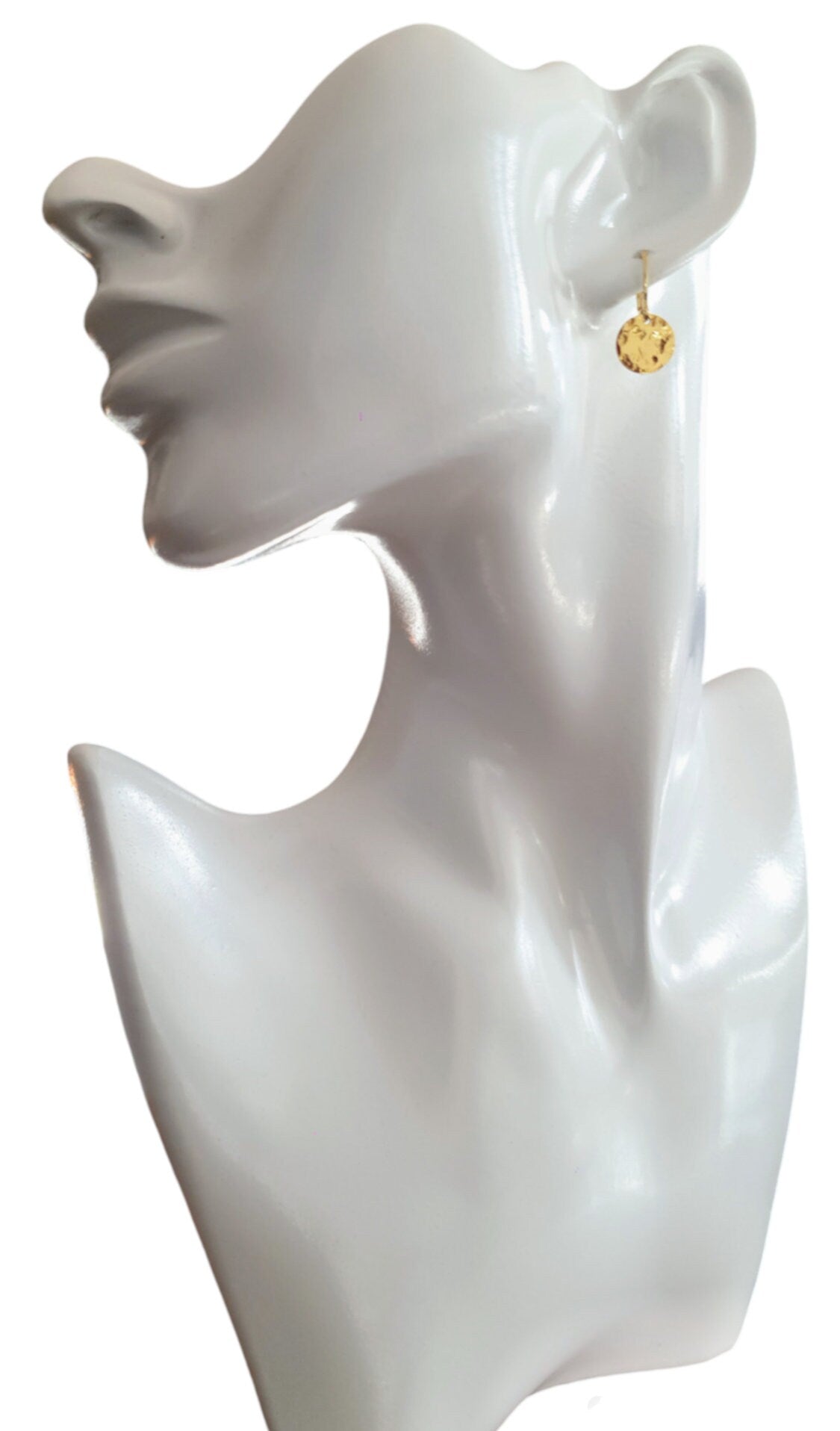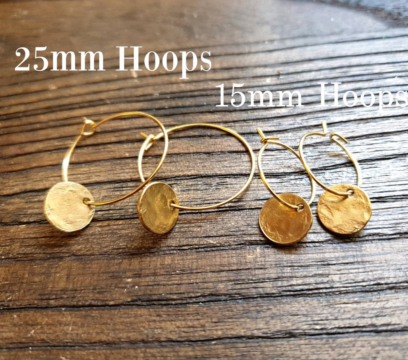 Hammered or plain circle 10mm disc Leverback dangle earrings or choose Hook Earrings or even Hoops. Can wear everyday or for special occasions.Materials: Stainless Steel gold, great for sensitive ears.Colour: goldDisc Leverback Size: 25mm Drop 10mm wideDisc Hook Earwire Size: 30mm Drop 10mm wide Disc Hoops 15mm Size: 25mm Drop 10mm wide Disc Hoops 25mm Size: 35mm Drop 10mm wide Finish: Plain, Personalised or Hammered. If you would like a different colour please message me or look in my store for more.