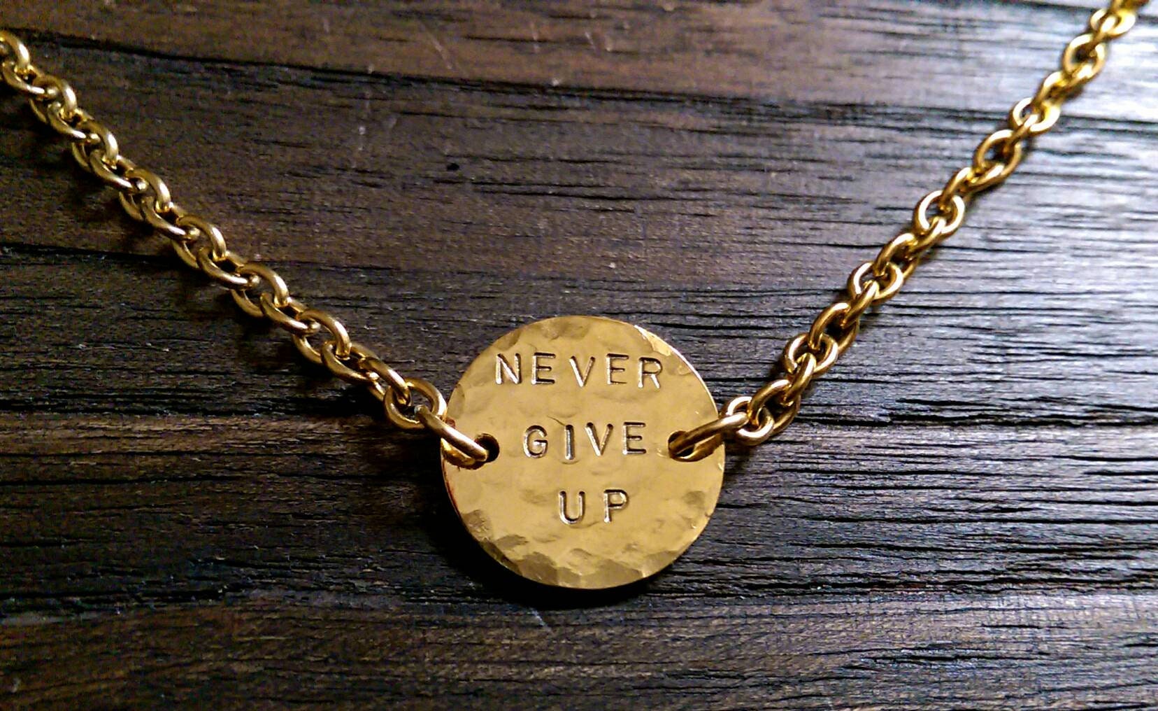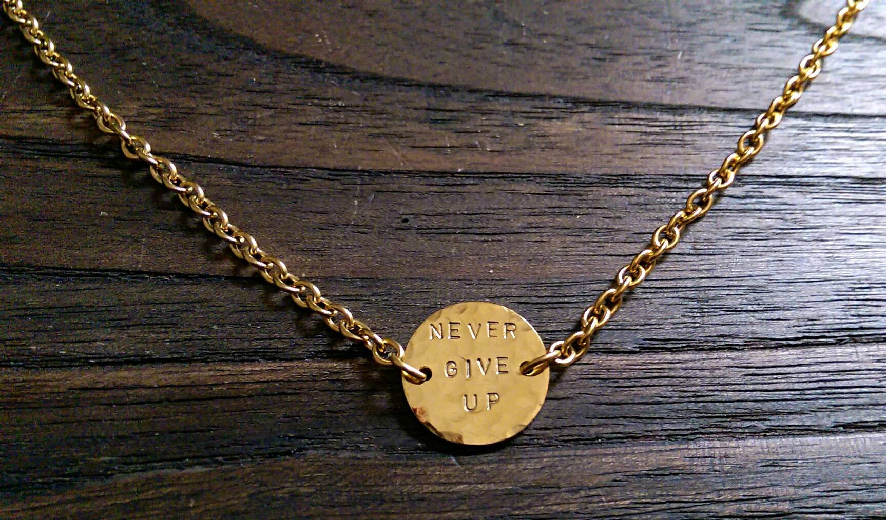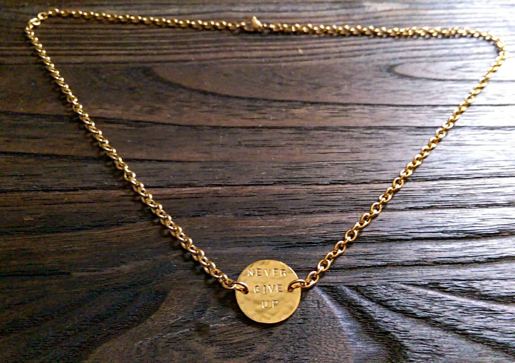 Hand stamped personalised hammered circle design necklace.Made with stainless Steel Gold pendant and chain.Colour: Gold.