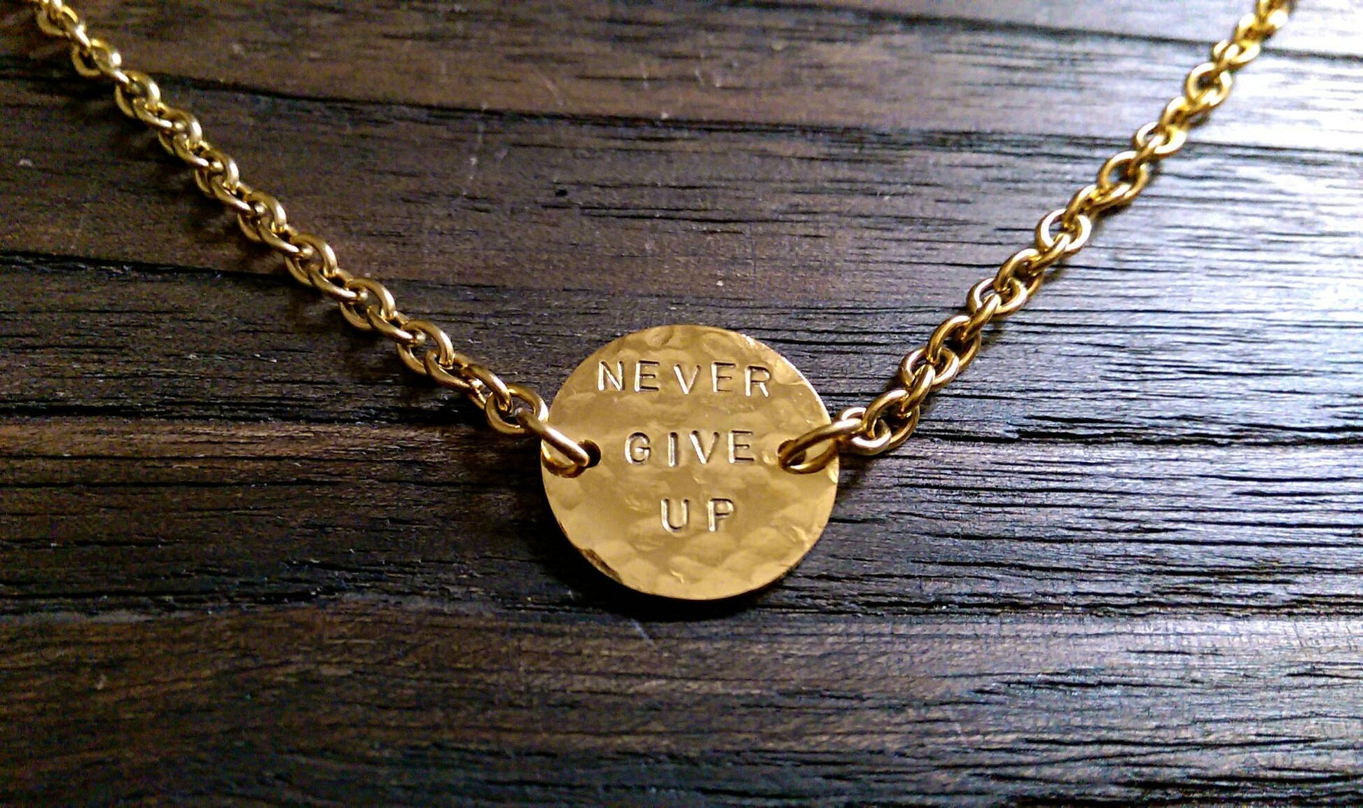 Hammered Pendant Necklace. Personalised Hand Stamped Necklace. Gold Stainless Steel Circle Necklace. Personalized Name Necklace