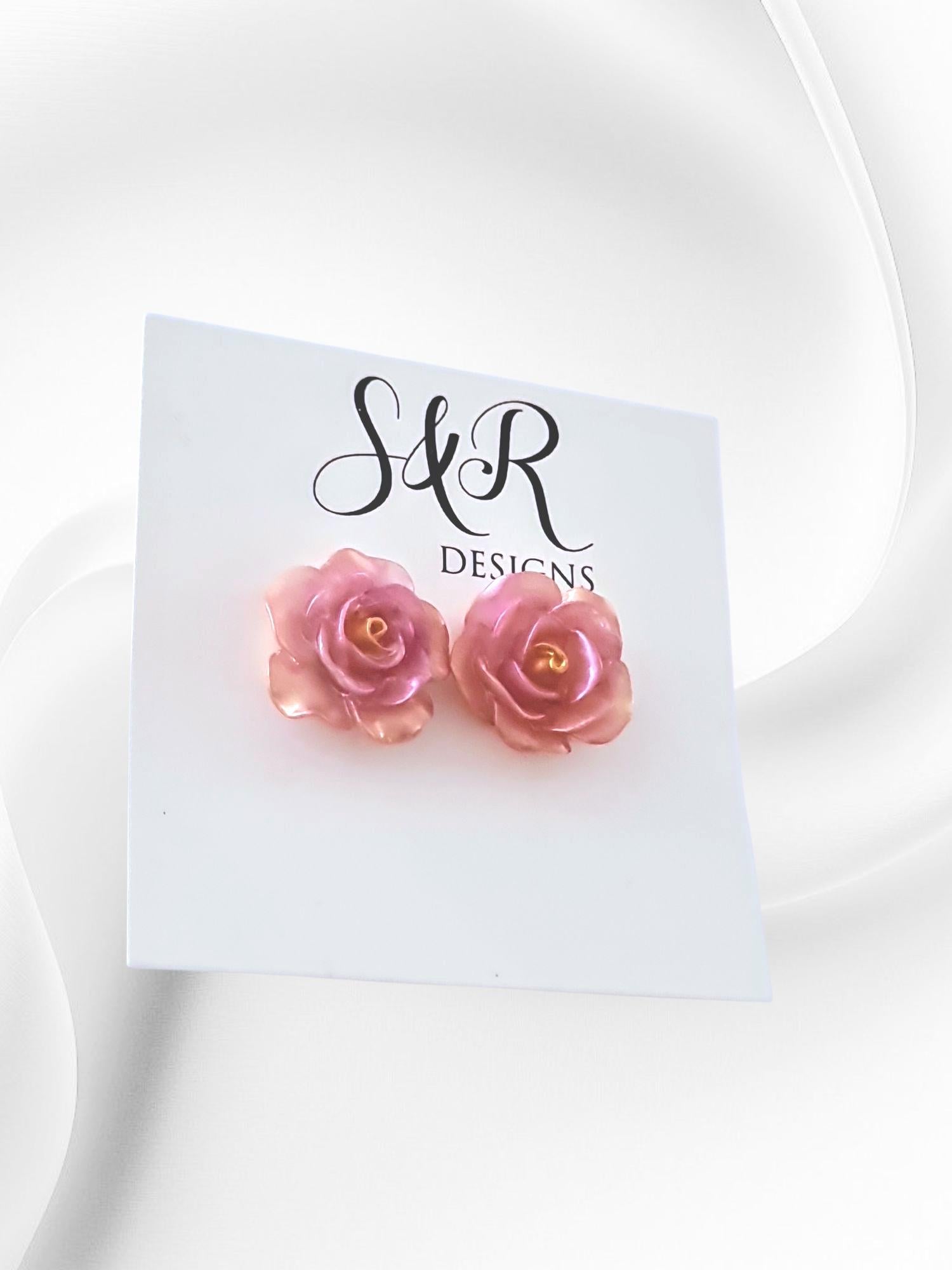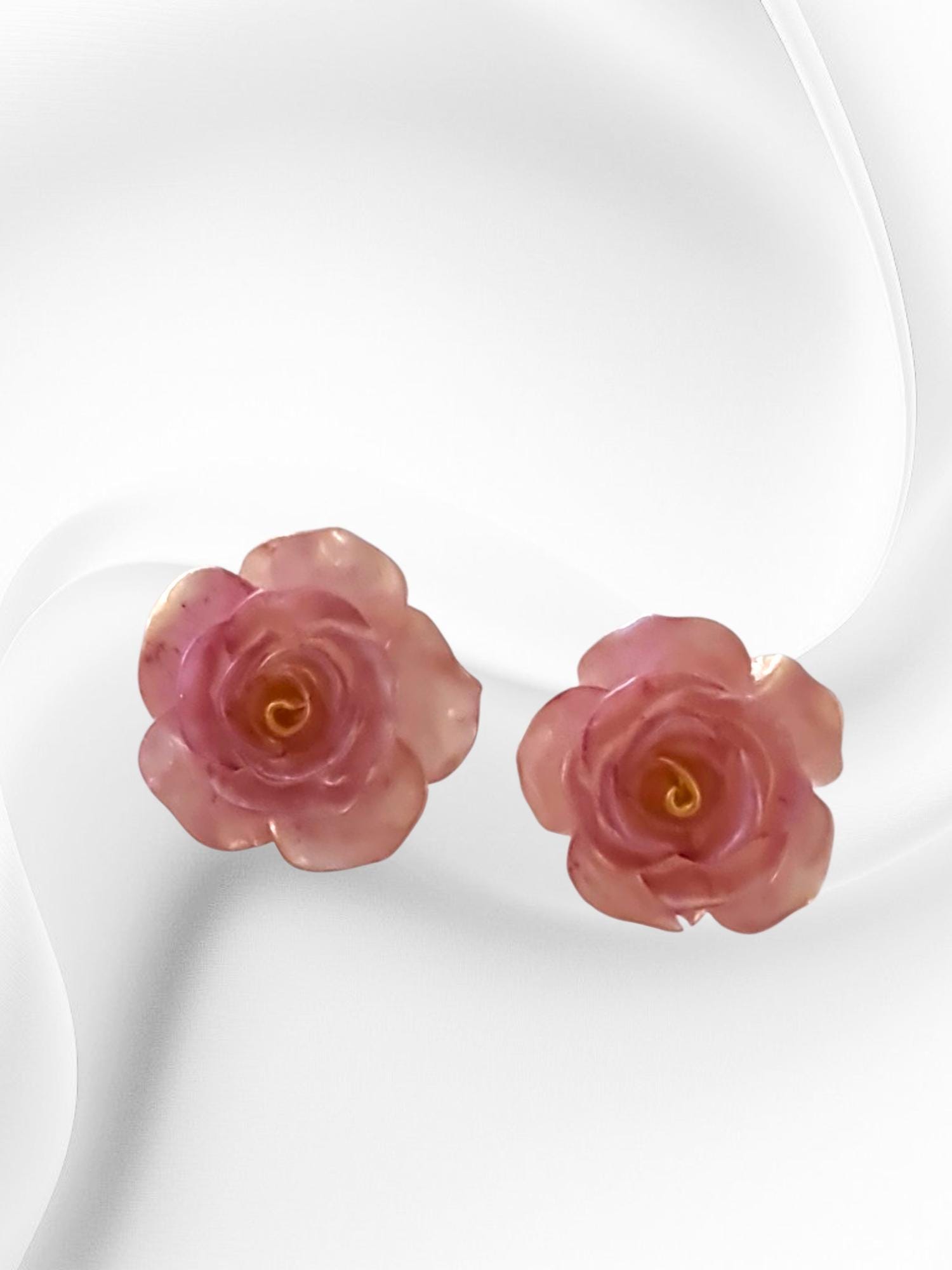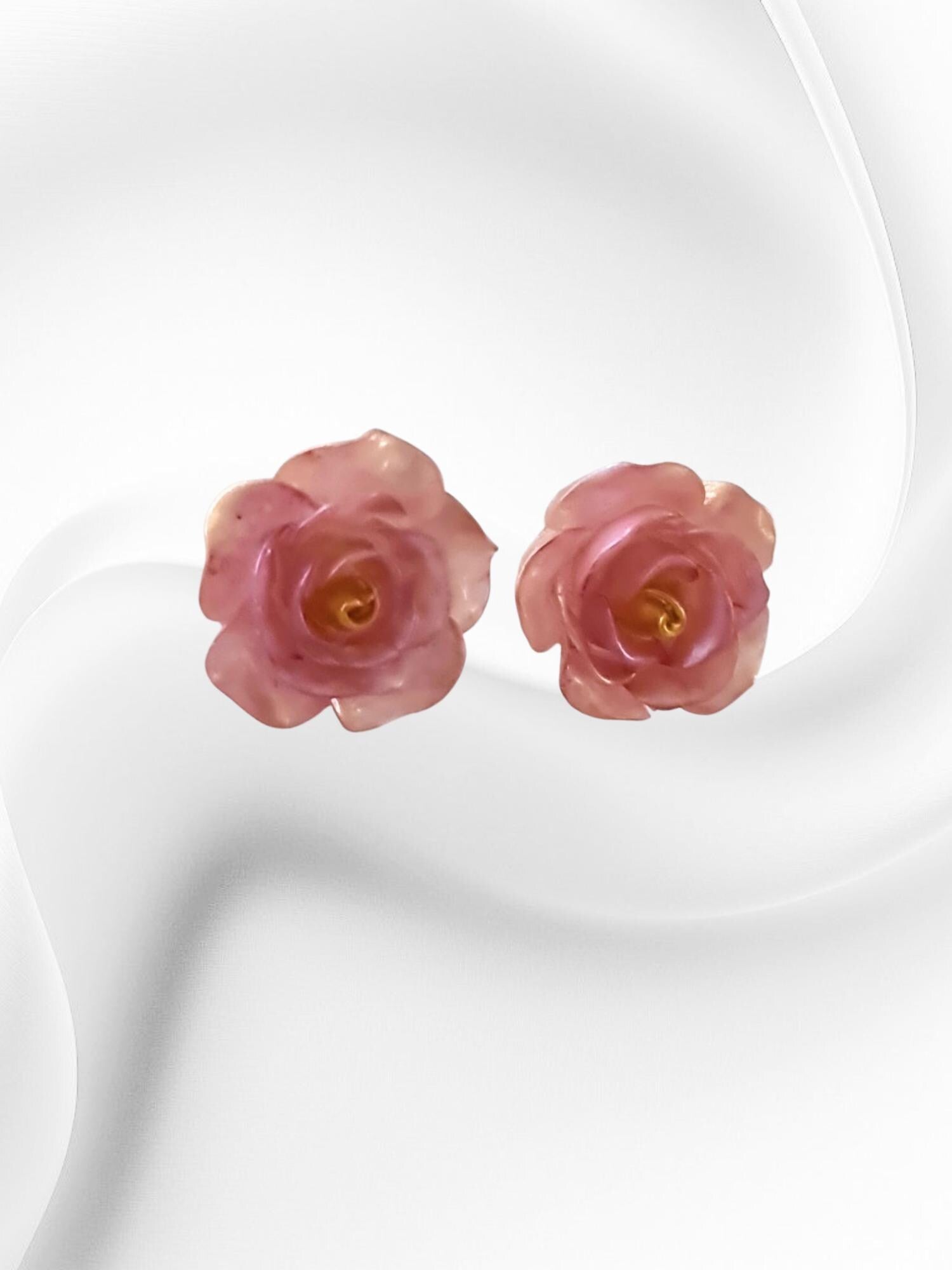 Handmade Pink Resin Rose Stud Earrings, Elegant Floral Earrings, Lightweight & Hypoallergenic, Gift for her, Flower Lover