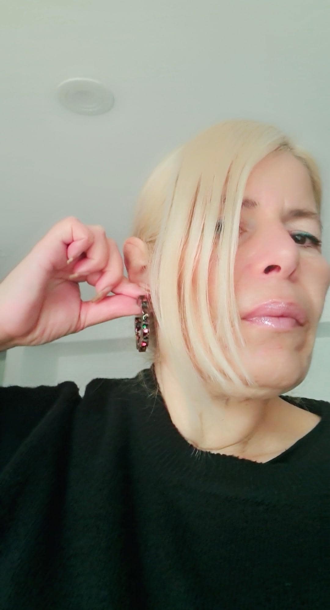 Statement Wave Hoop Earrings.Material: Stainless steel, resin, glitter Colour: black, blue, green, pink and tealSize: 45mm length drop X 48mm wideIf you like light weight comfortable earrings then these are for you. Sparkly you can wear everyday or a night out.All metals are made with stainless steel which is perfect for sensitive ears and never changes colour. Want a different colour, solid or mixed, send me a message and I will custom colour your earrings.