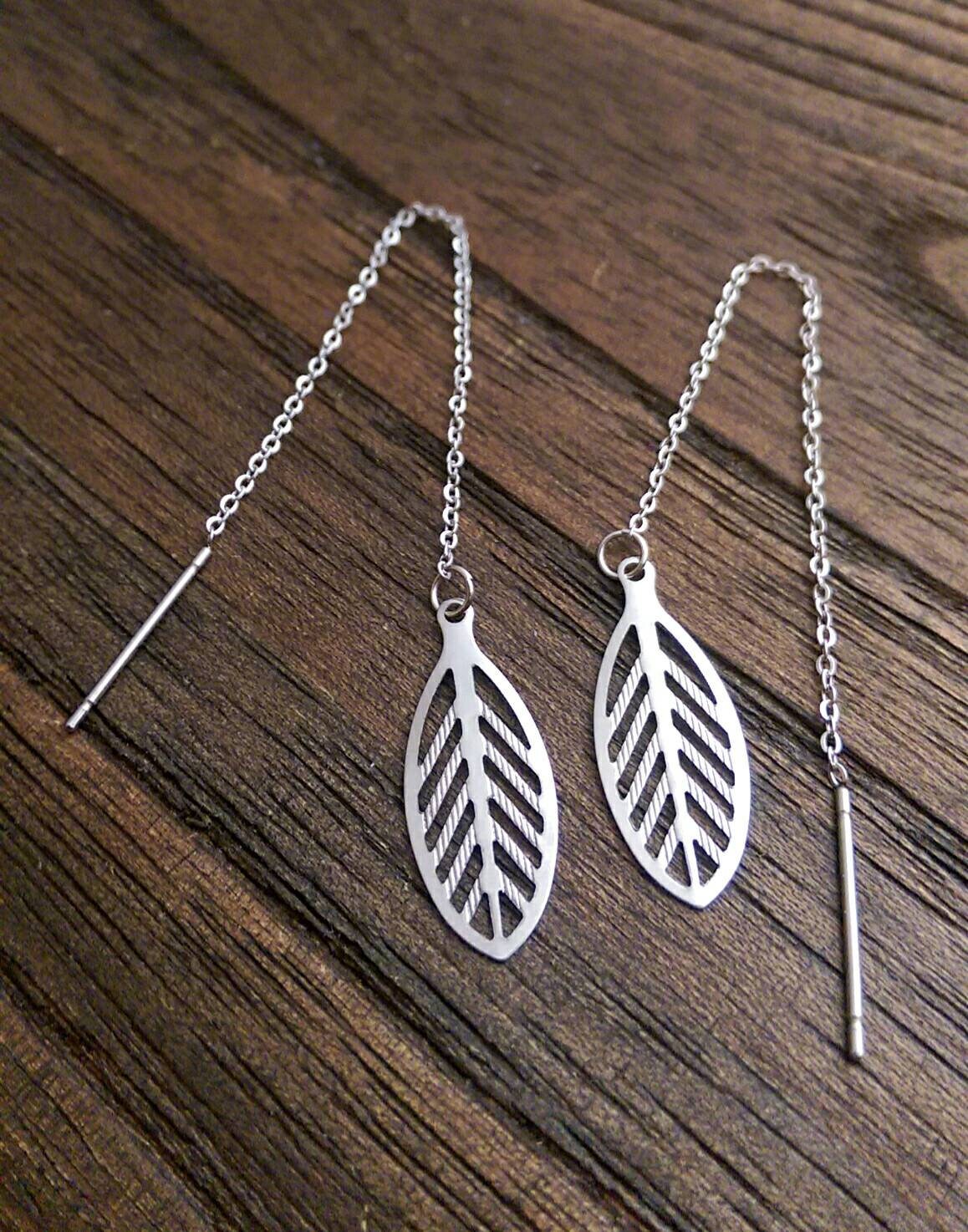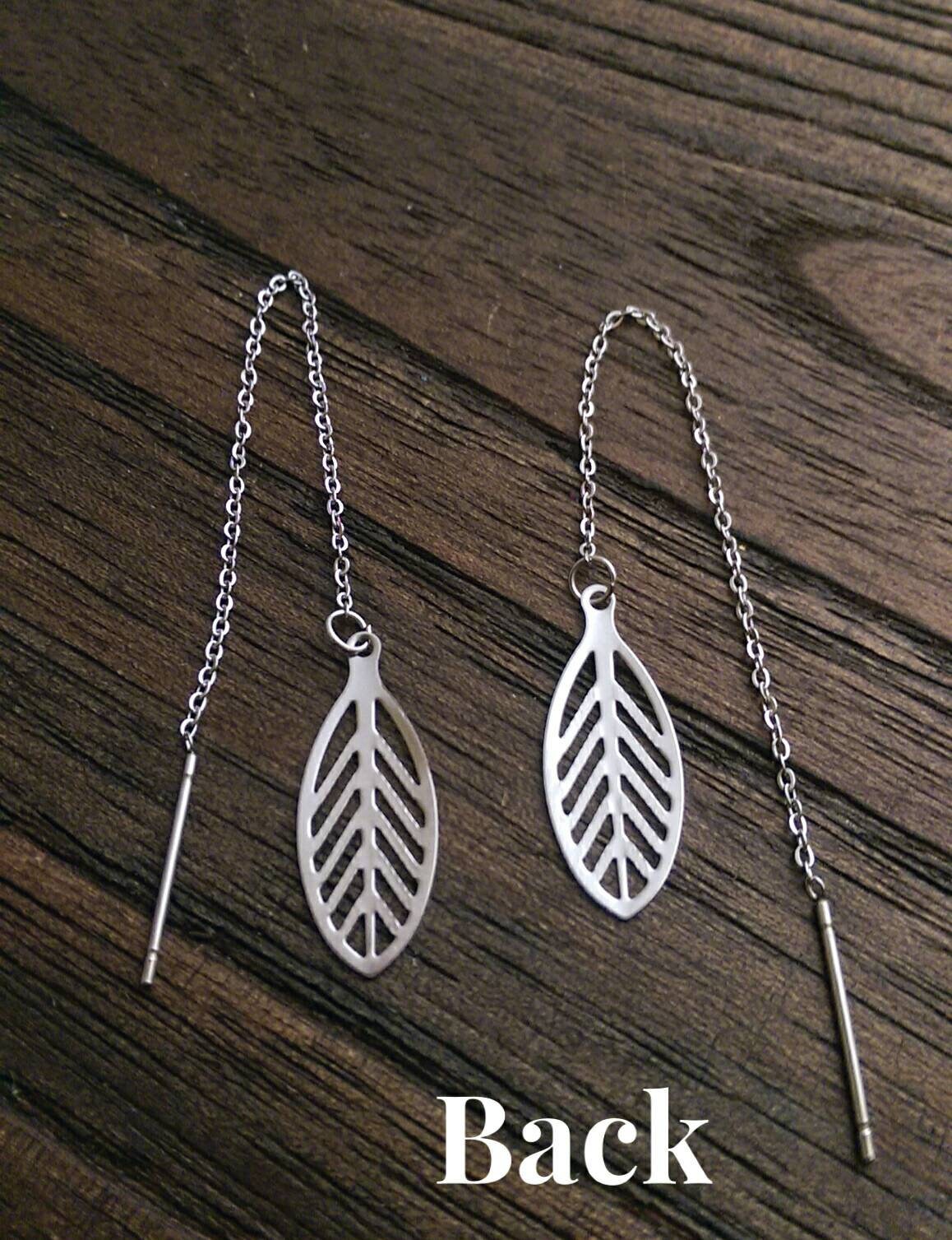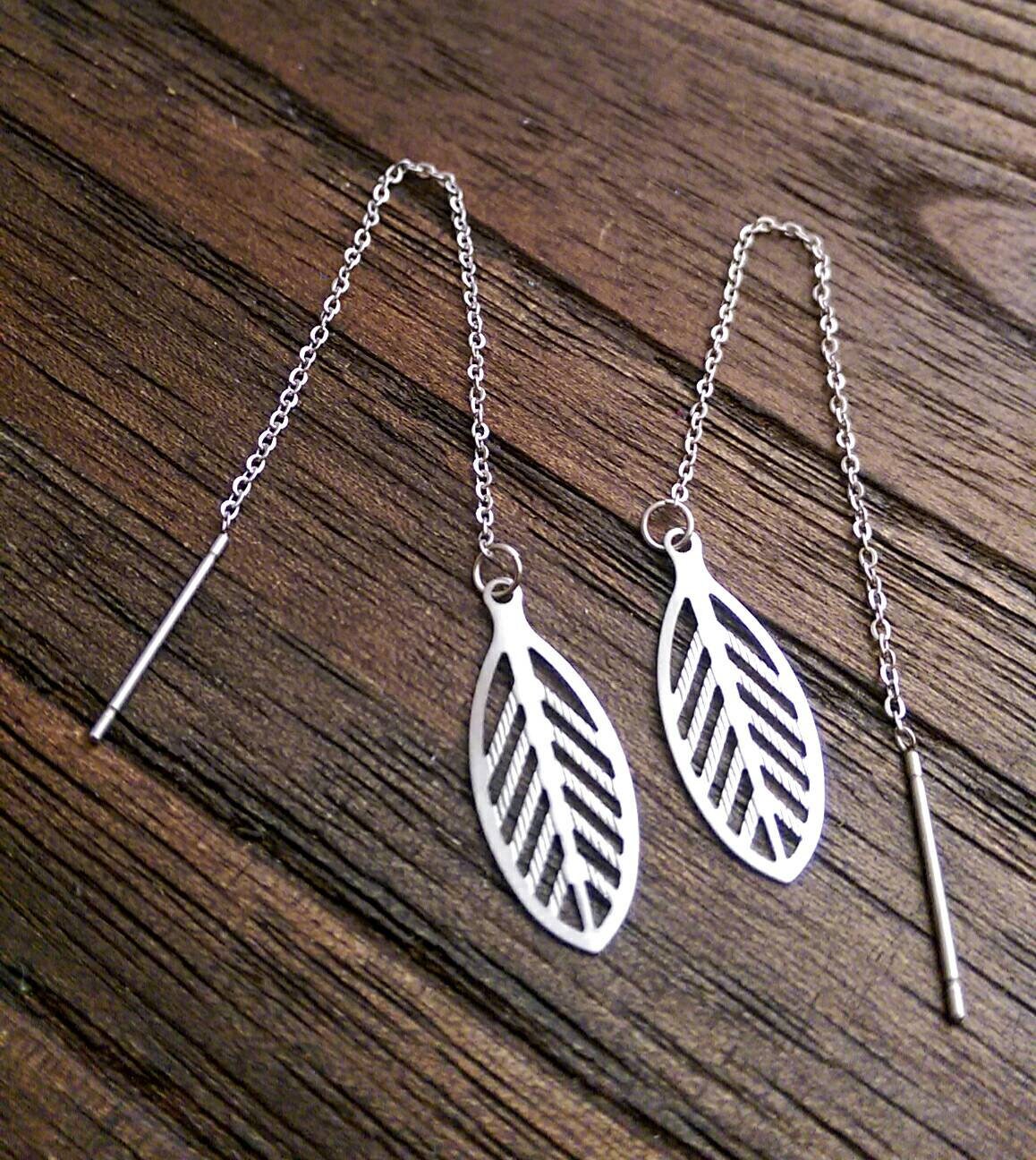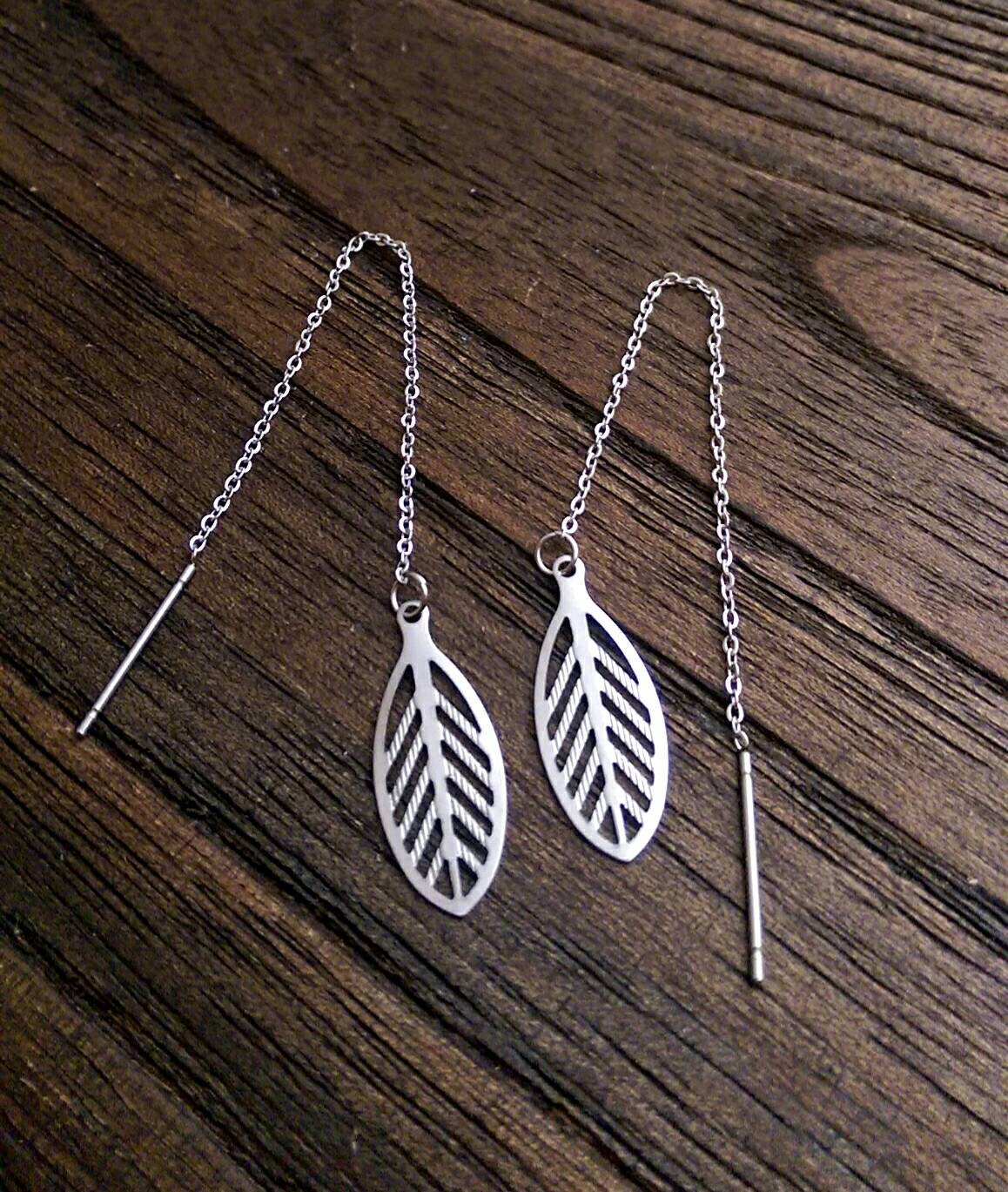 Leaf Filigree Stainless Steel Dangle Thread Earrings, Threader Earrings.