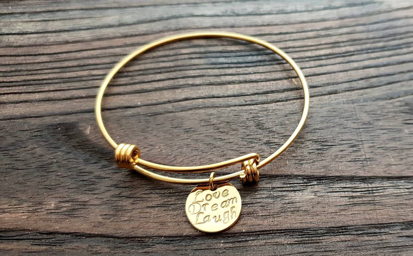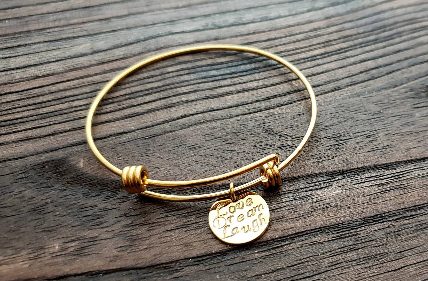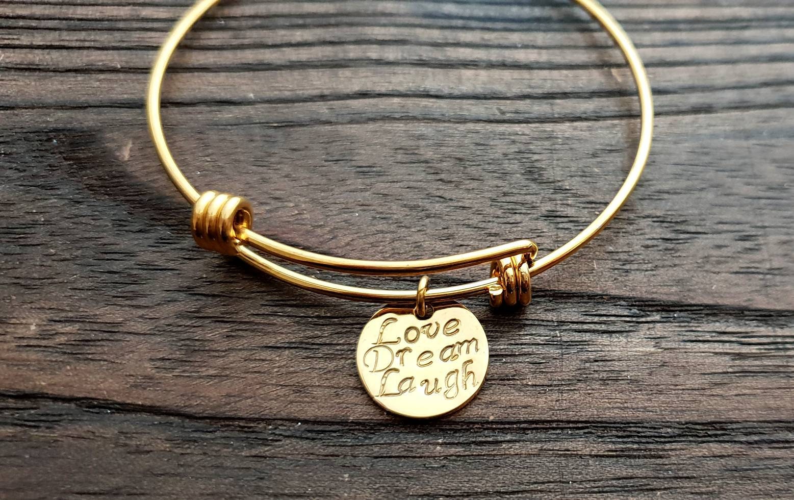 Personalised Circle Charm Bangle, Adjustable Gold or Silver Bangle Stainless Steel