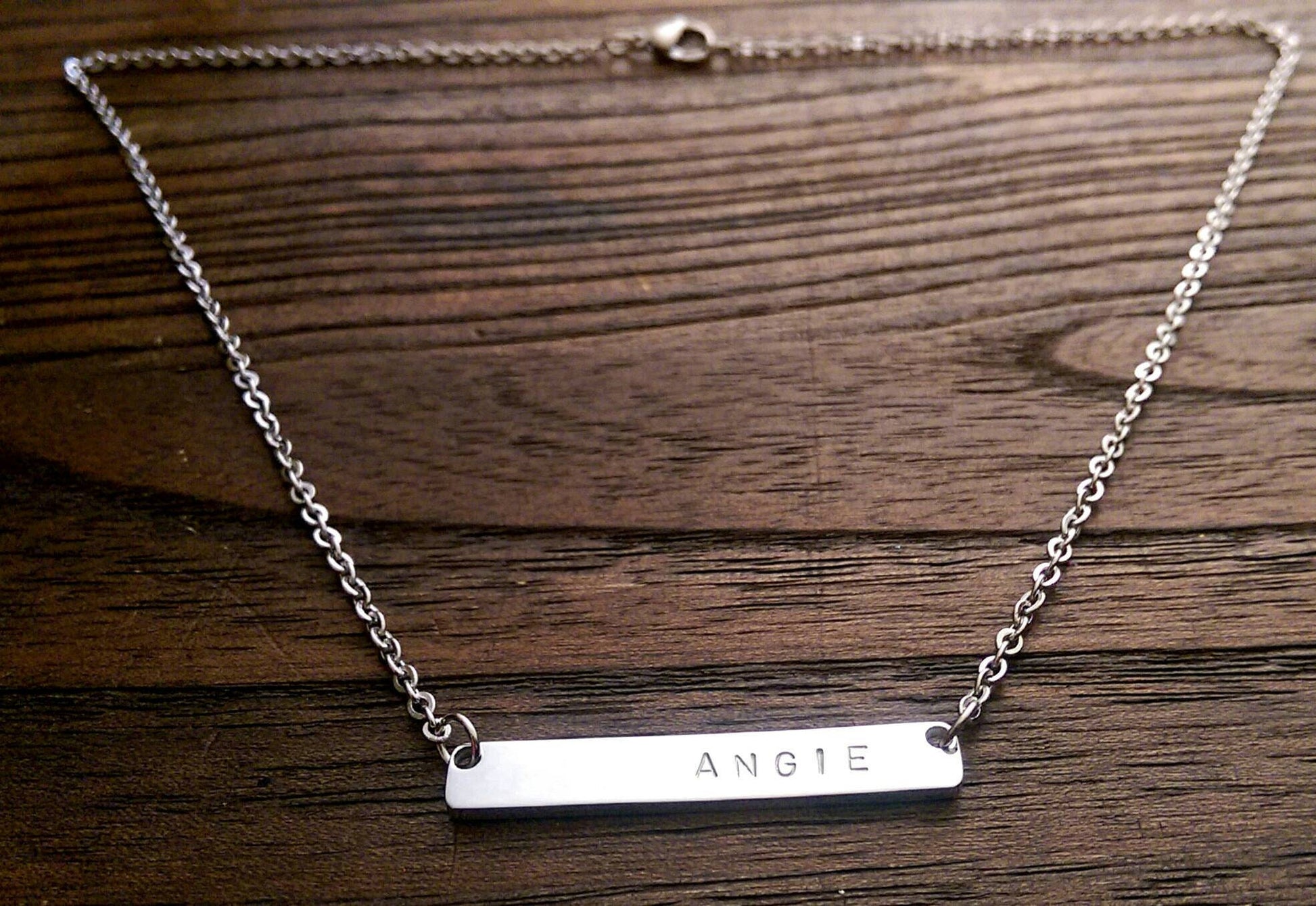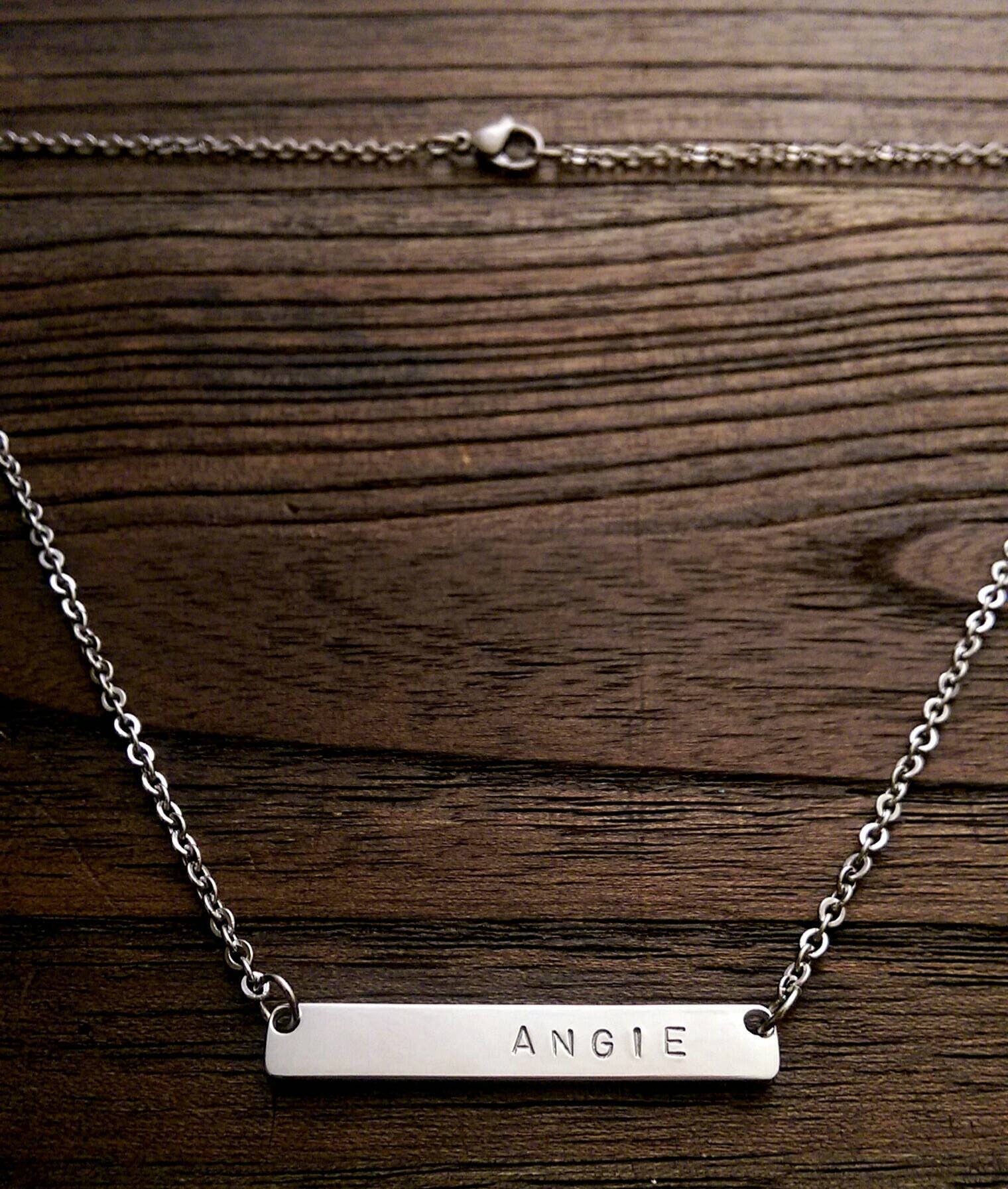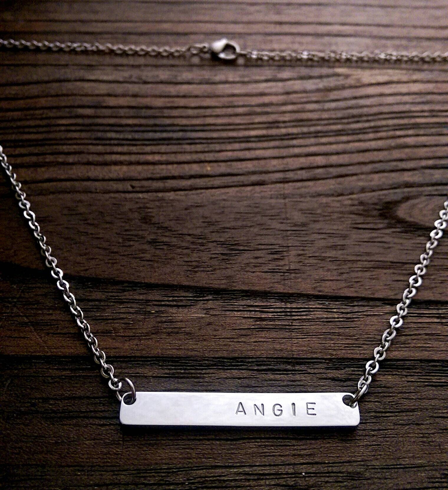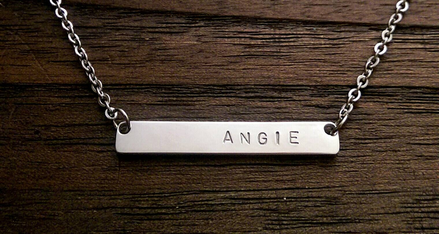Personalised Wide Bar Necklace, Name Necklace Hand Stamped Stainless Steel. Personalized Gift