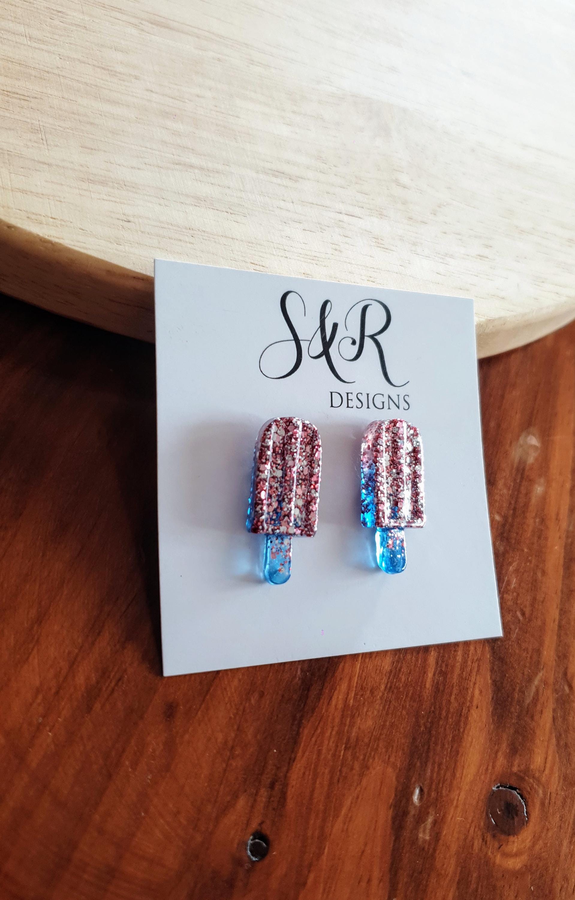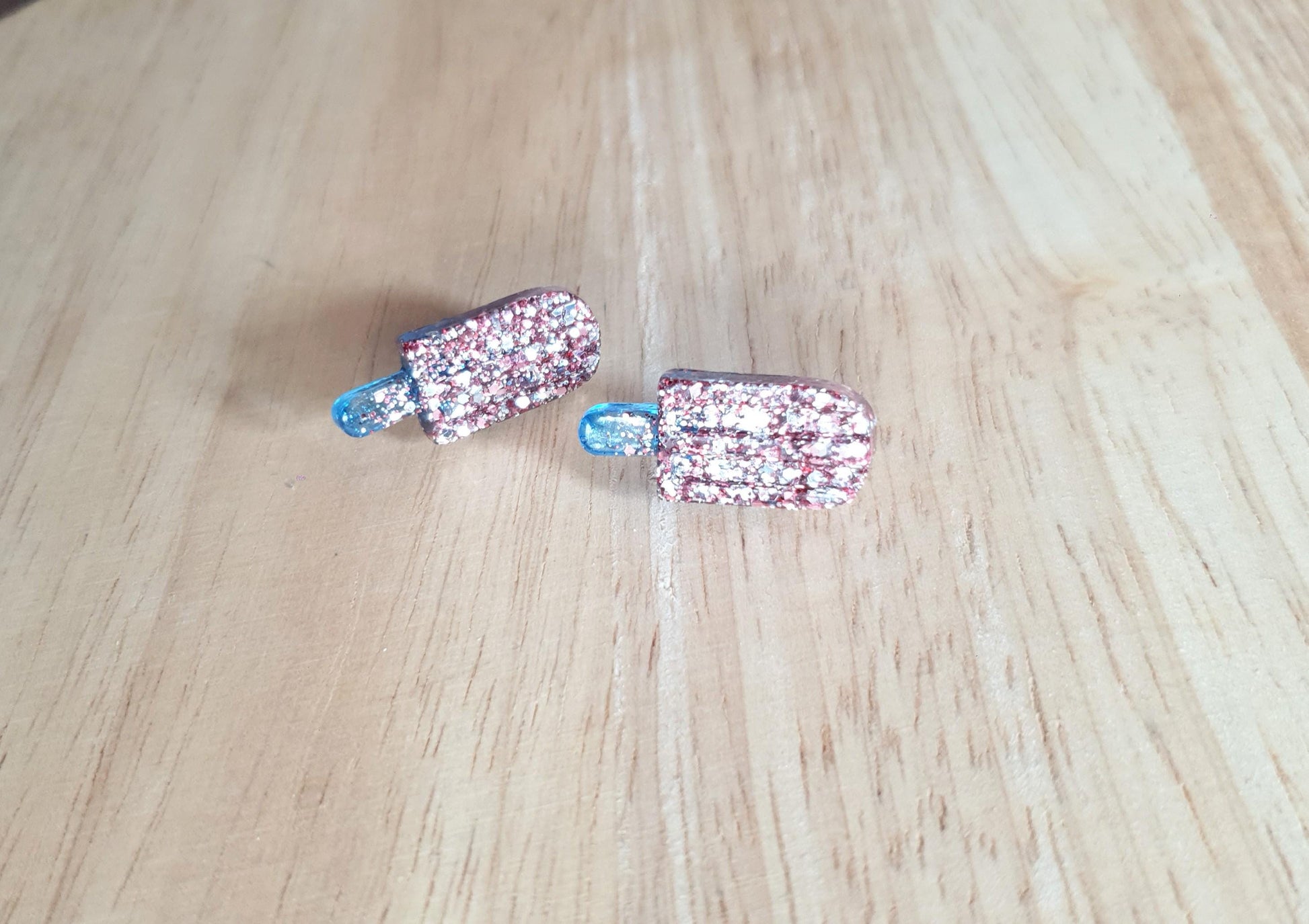 Pink Icy Pole Stud Glitter Earrings, Pink Silver Mix with Blue Ice Cream Earrings, Statement Food Lover Earrings