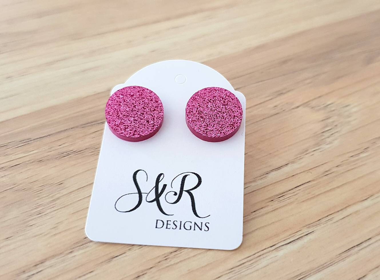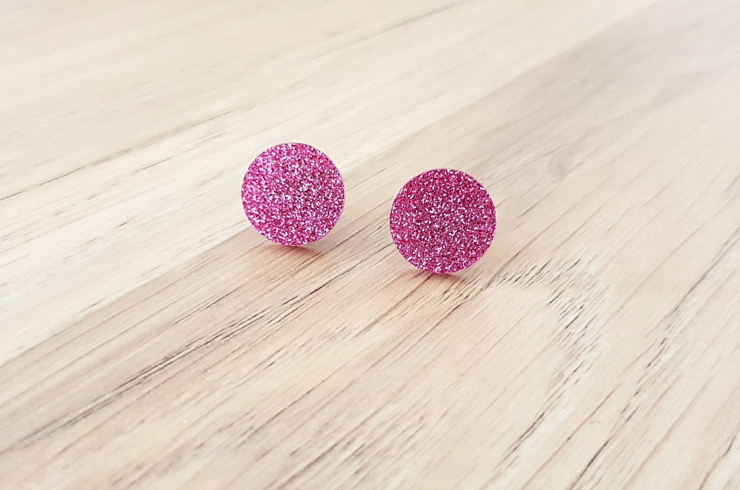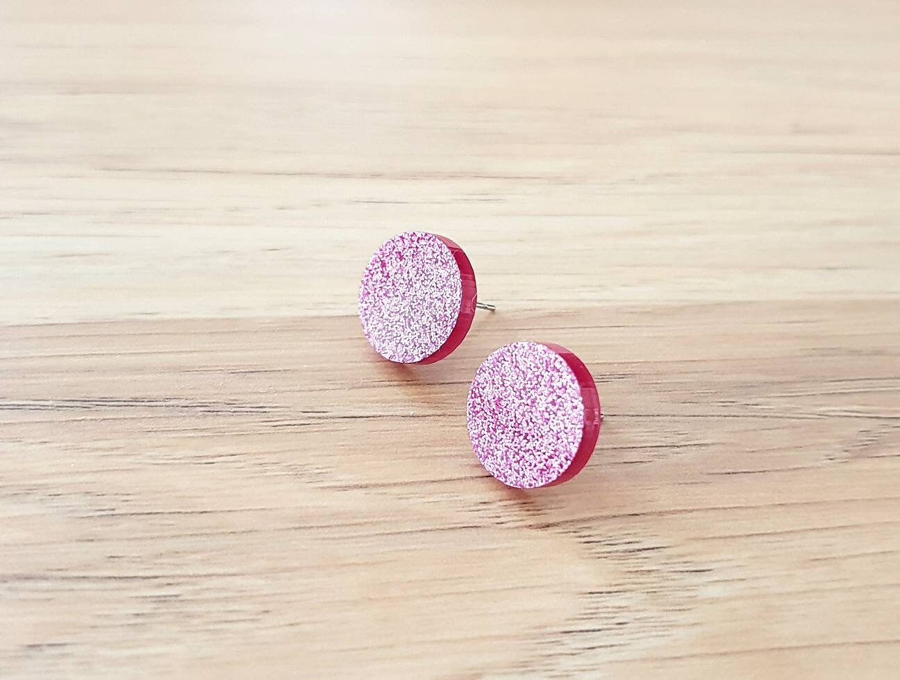 Rose Pink Glitter Stud Earrings, Acrylic Earrings, Stainless Steel Earrings.
