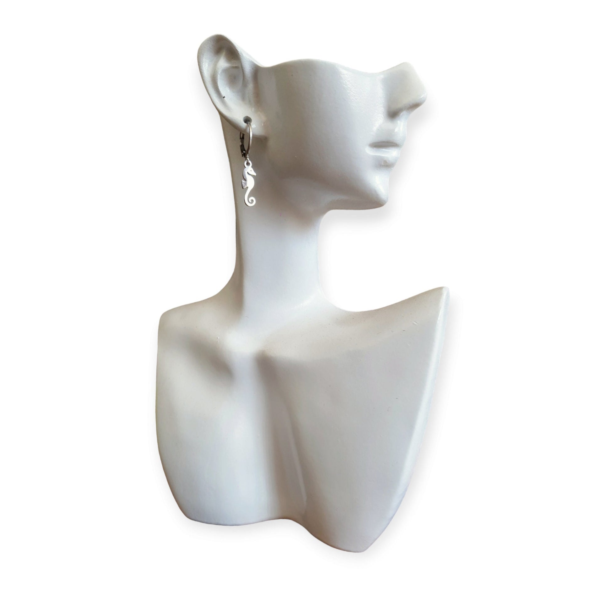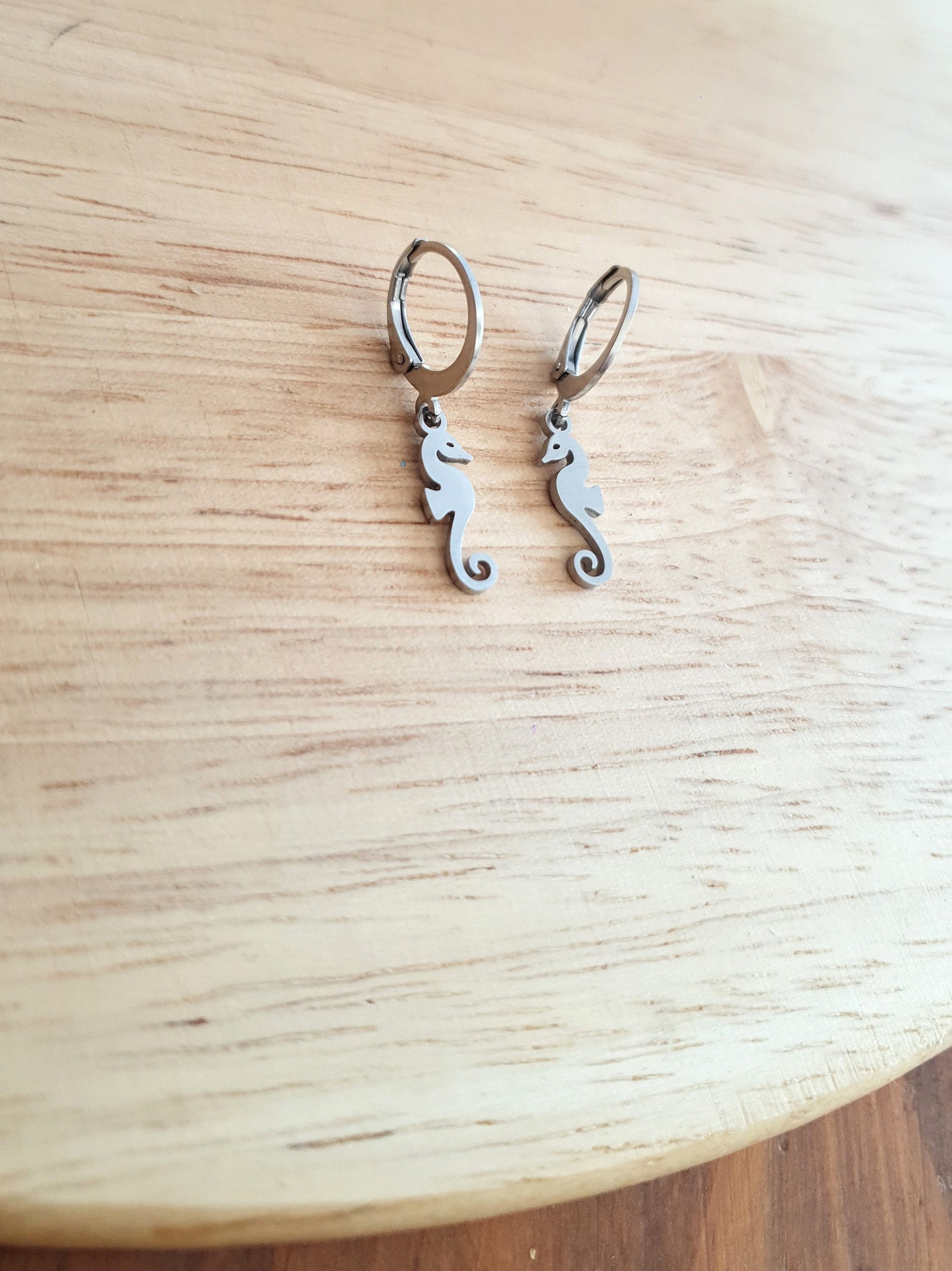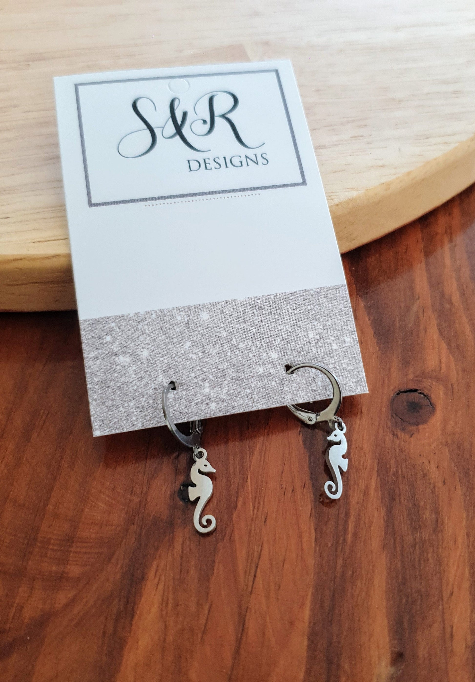 Silver Seahorse Earrings, Minimalist Stainless Steel Dangle Drops, Choose Leverback or Hook Earwire Earrings. Beach Wear Gift
