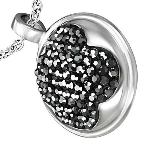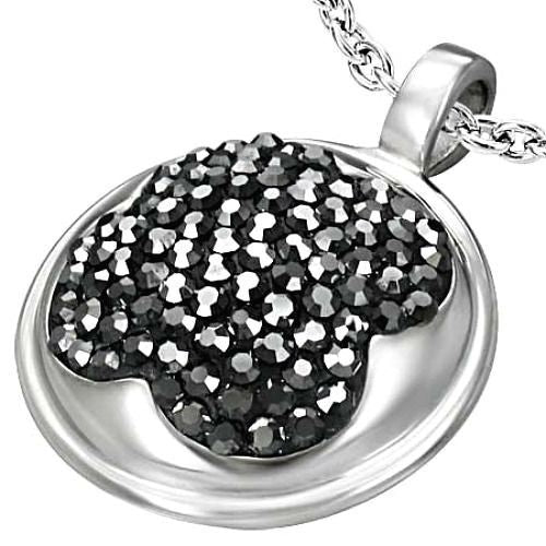 Stainless Steel Black Crystal Flower Pendant Necklace 18" 45cm Chain