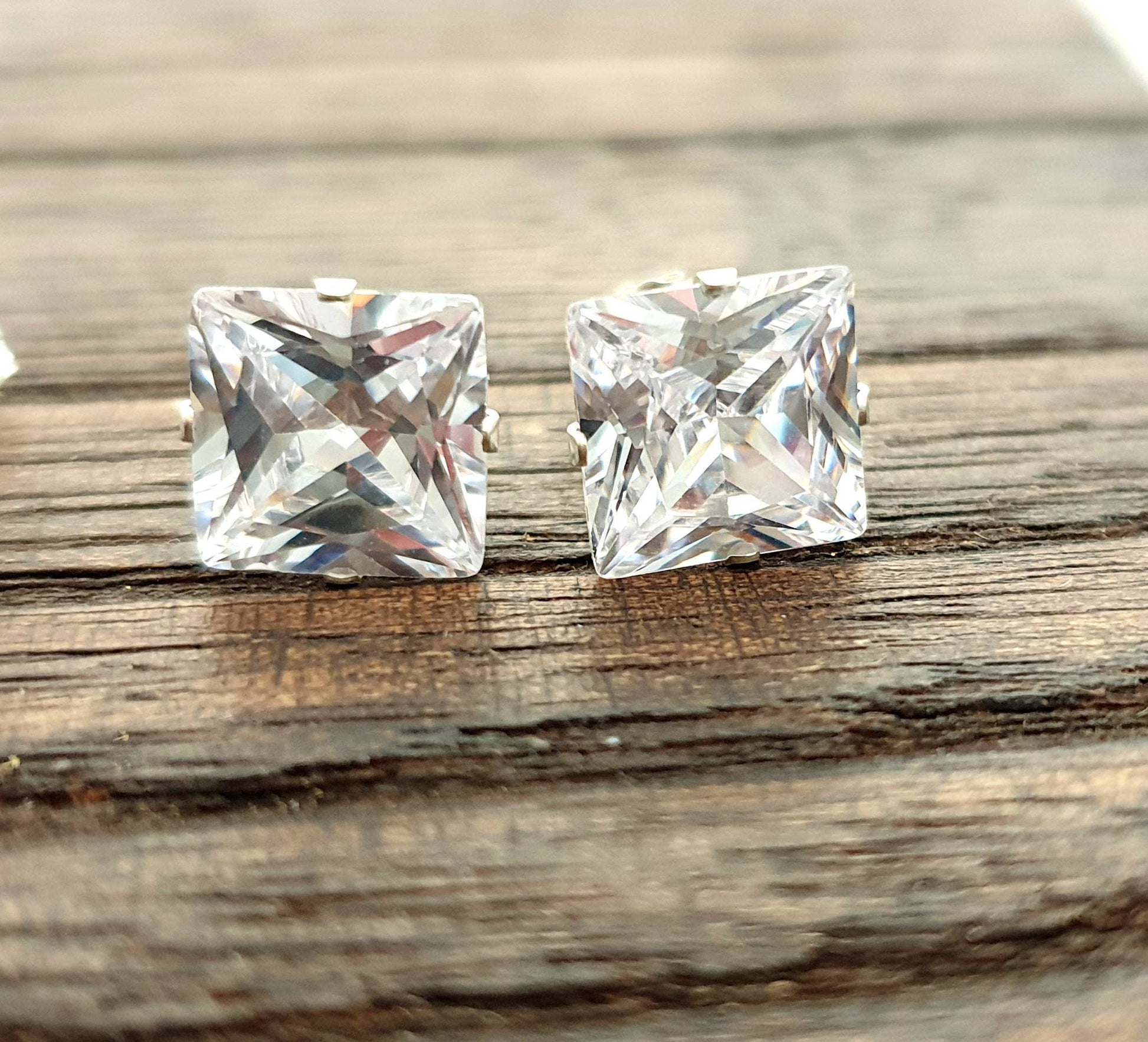 Sterling Silver CZ Square Stud Earrings, Cubic Zirconia Stud Earrings, Square Cz Studs, Princess Cut Studs 3mm 4mm 5mm 6mm 7mm 8mm 9mm, Pair