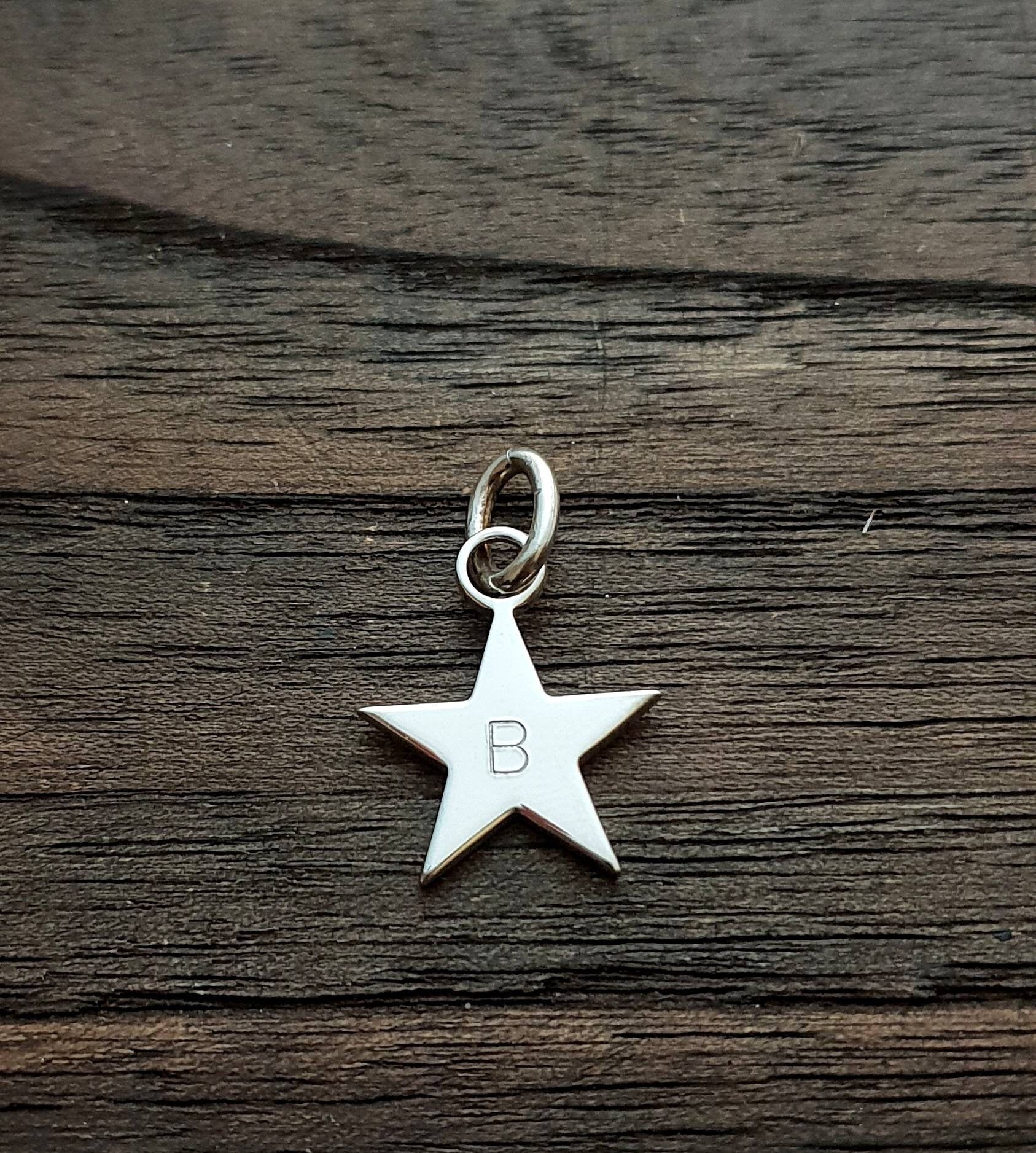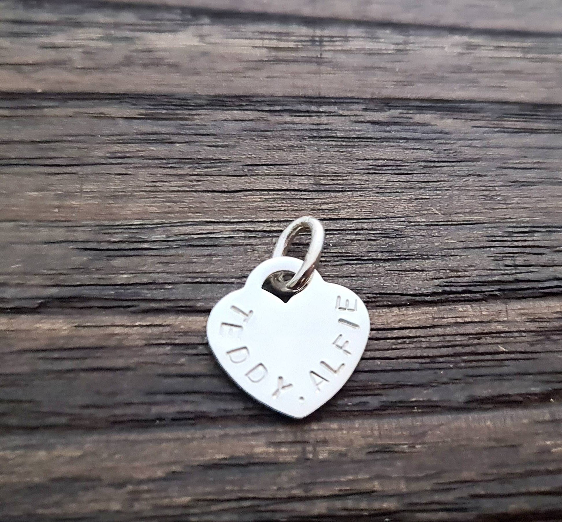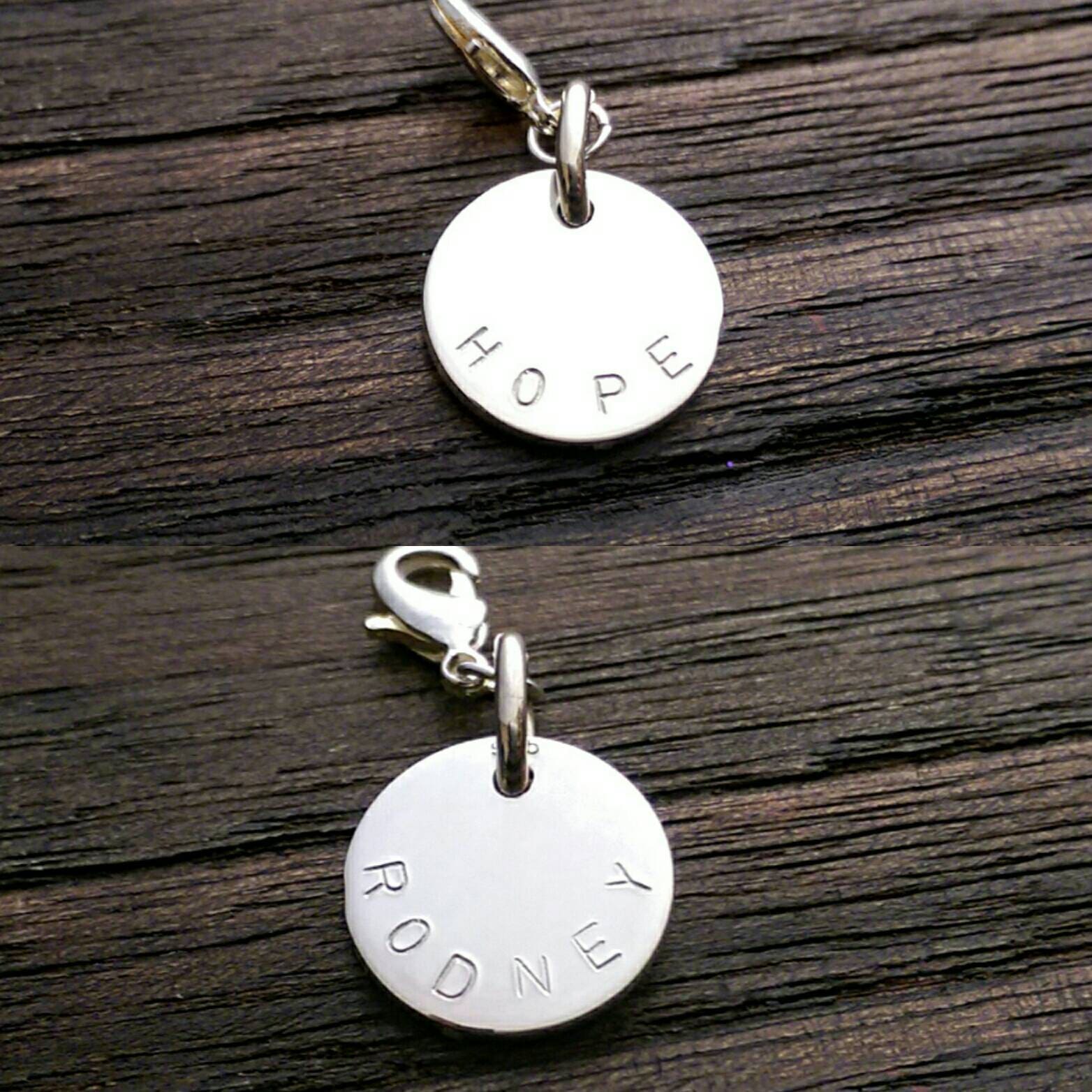 Sterling Silver Personalised Hand Stamped Name Pendant Circle 20mm or 15mm, Star or Heart Design