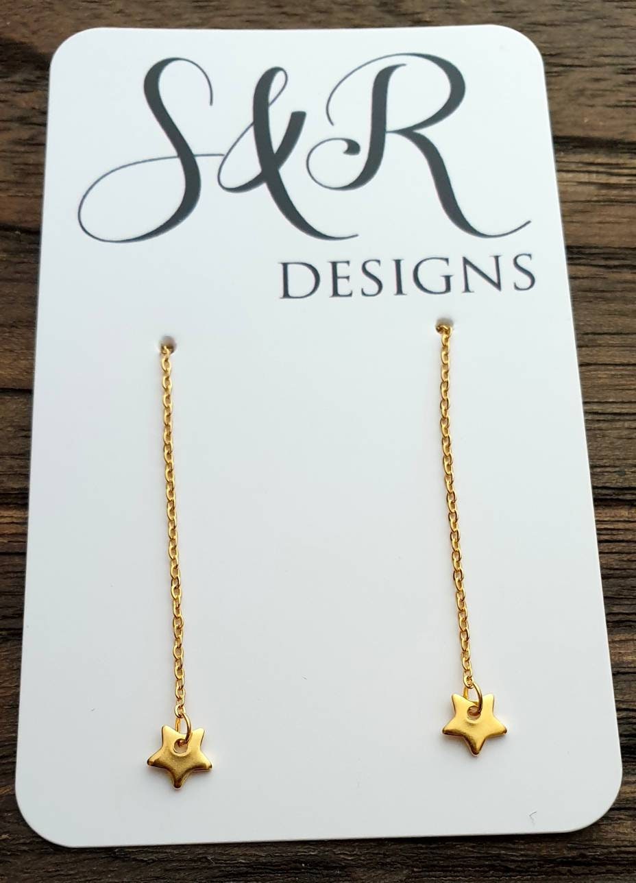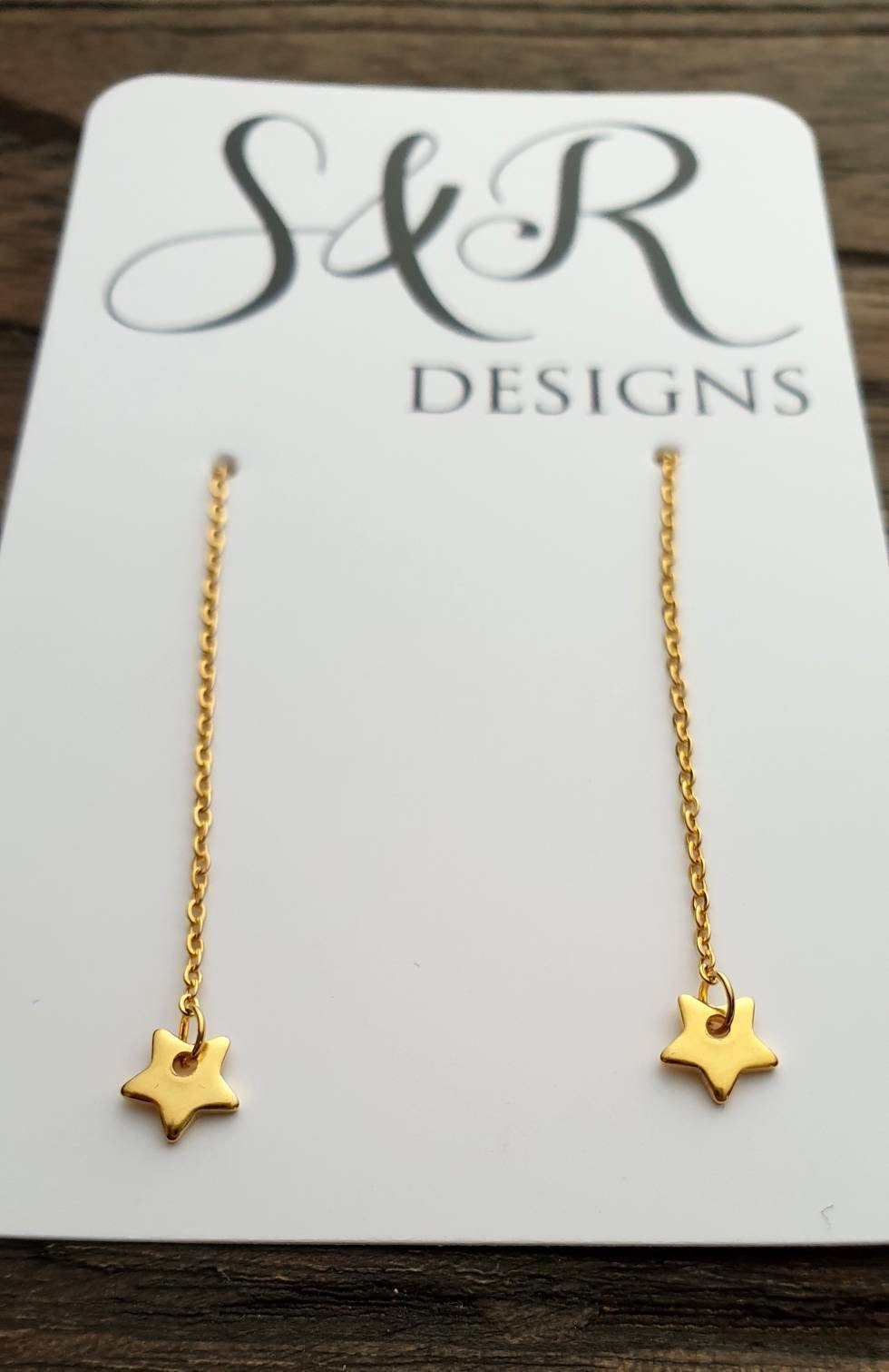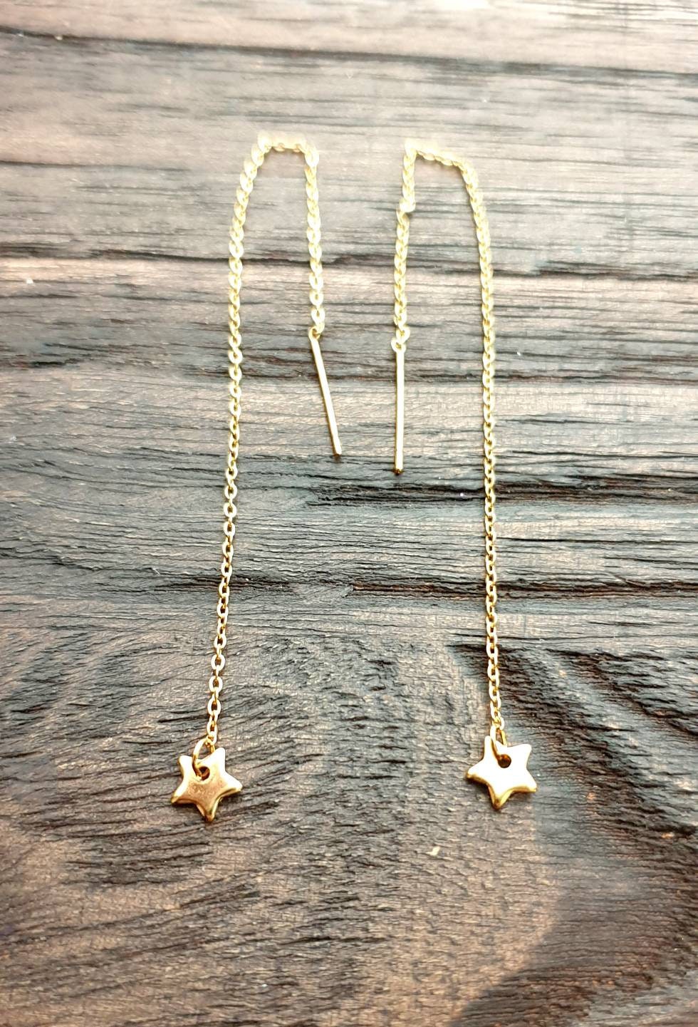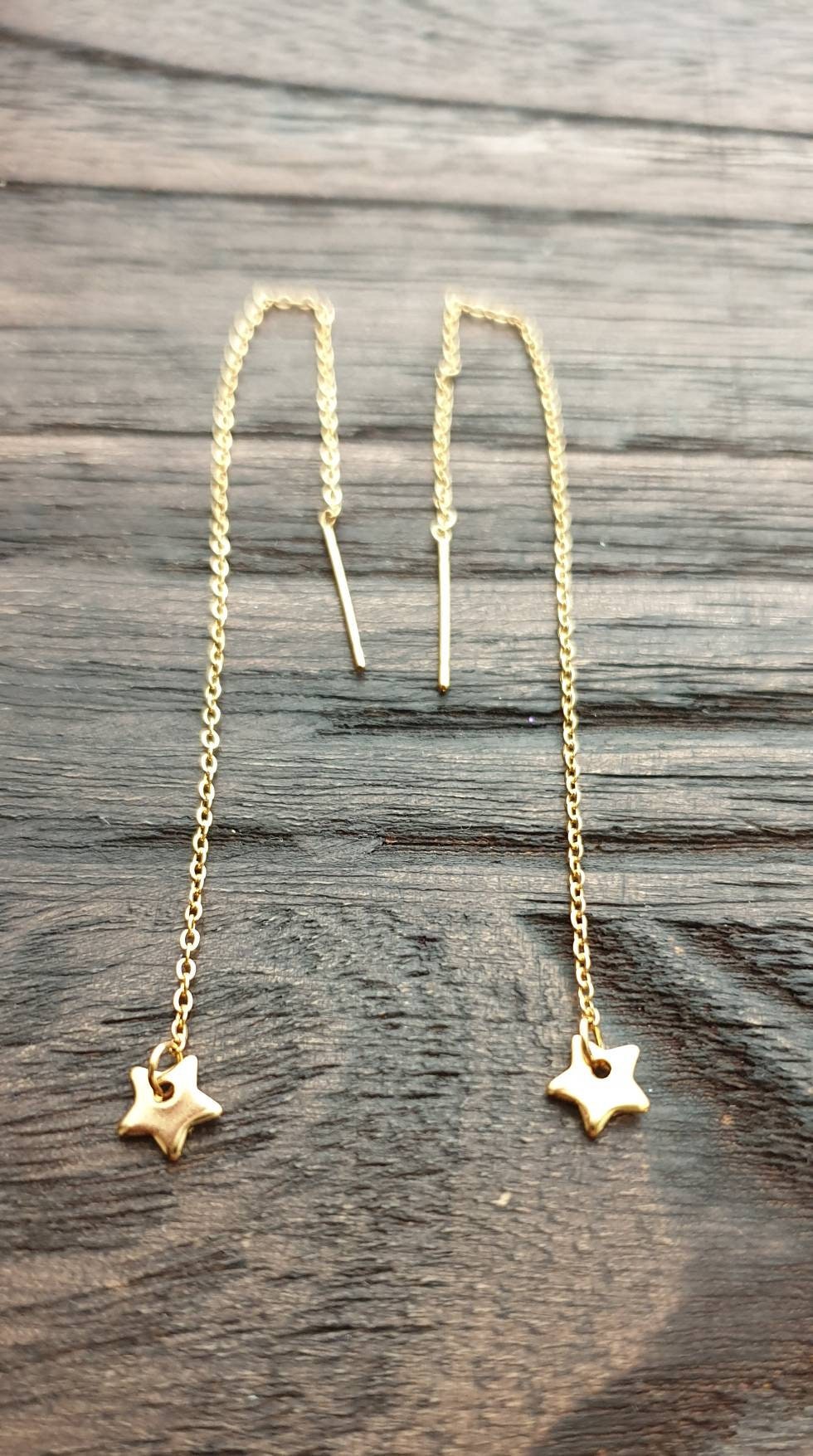 Tiny Star Gold Stainless Steel Dangle Thread Earrings, Gold Thread Earrings, Star threaders