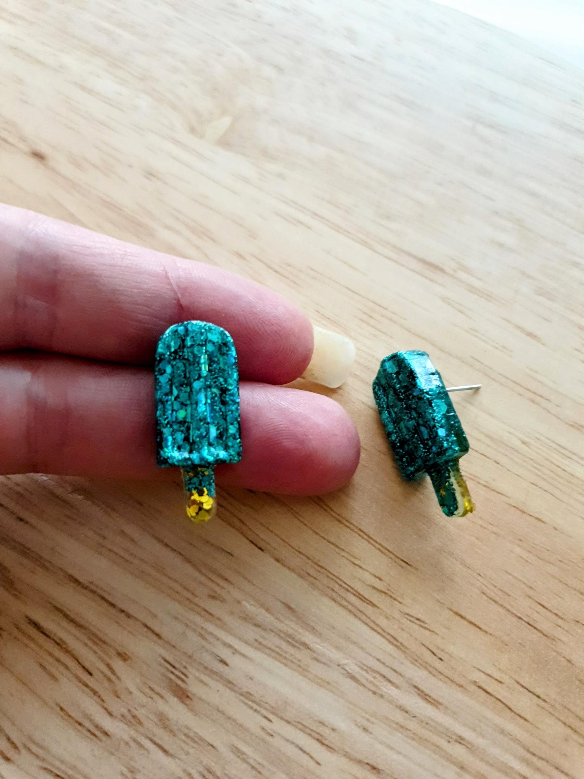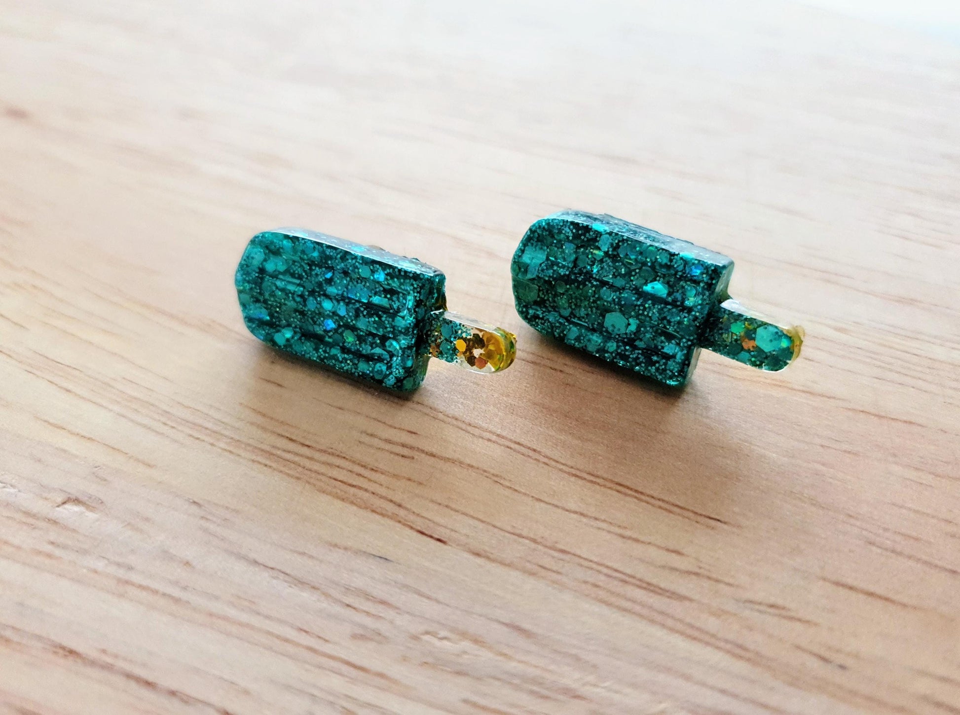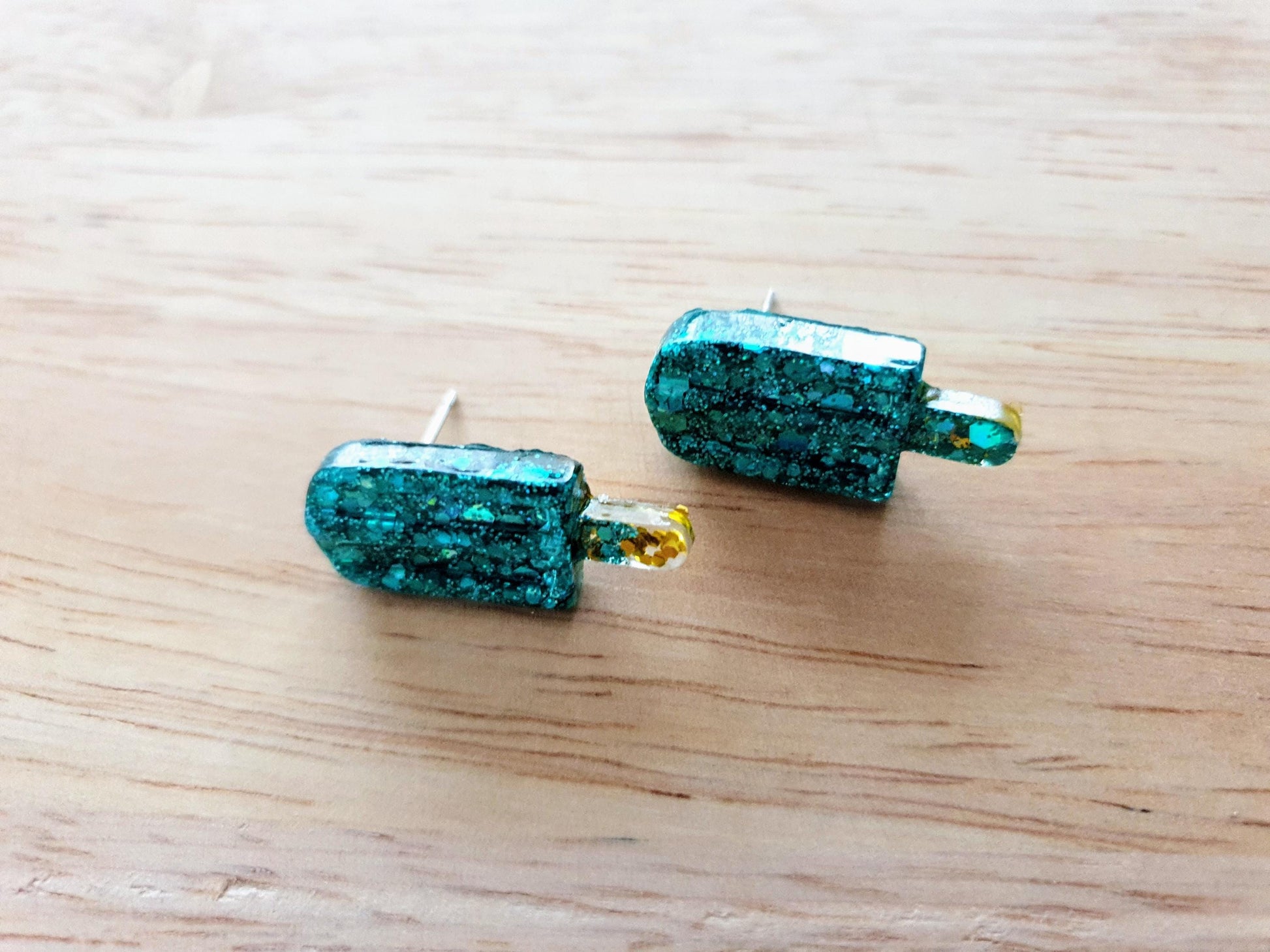 Turquoise Icy Pole Stud Earrings, Glitter Ice Cream Earrings, Statement Food Earrings
