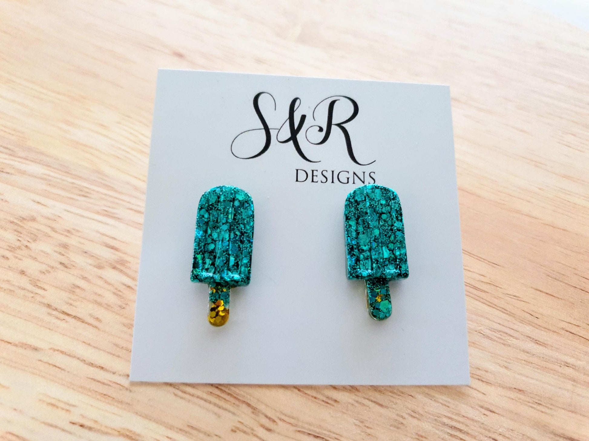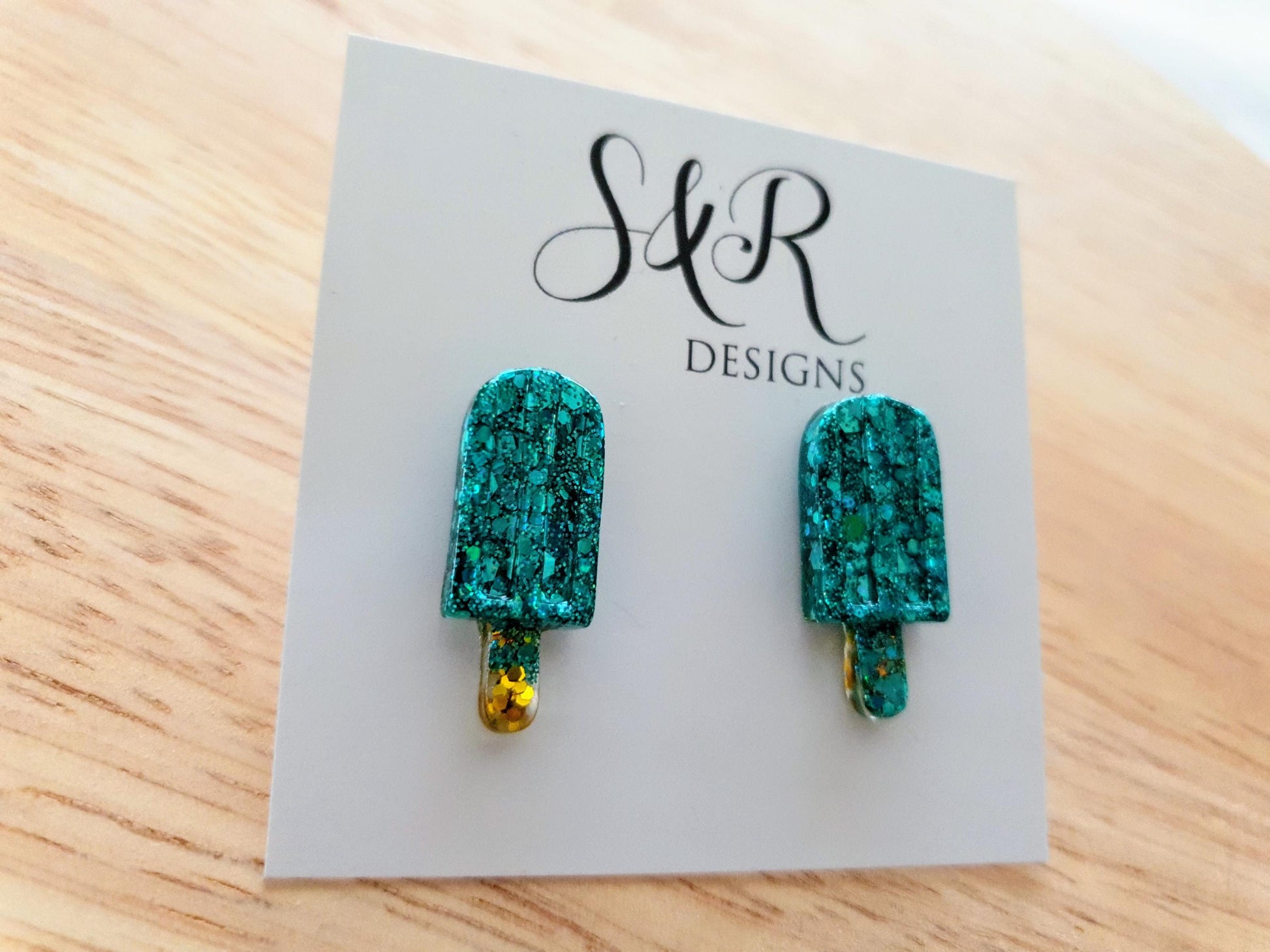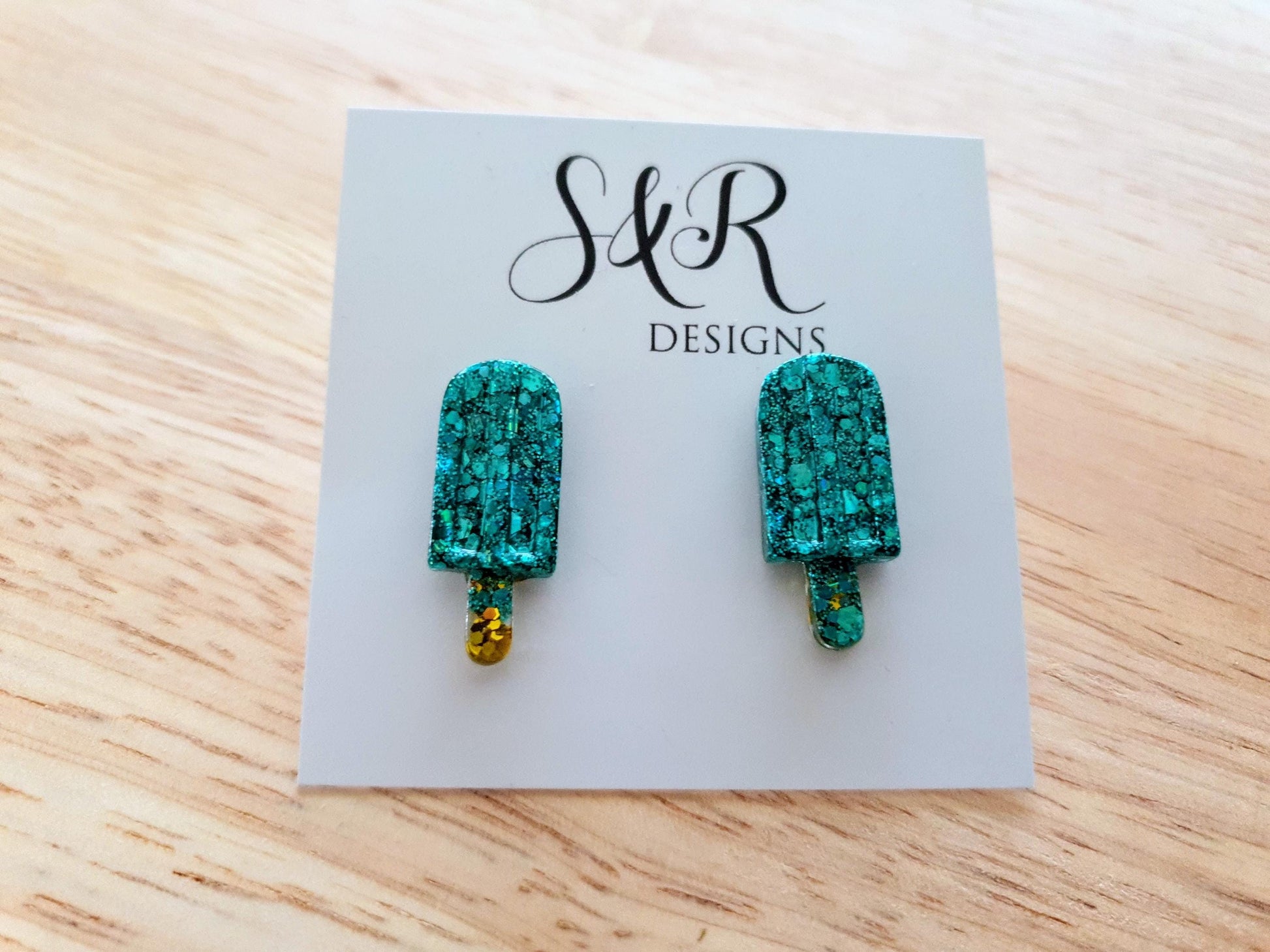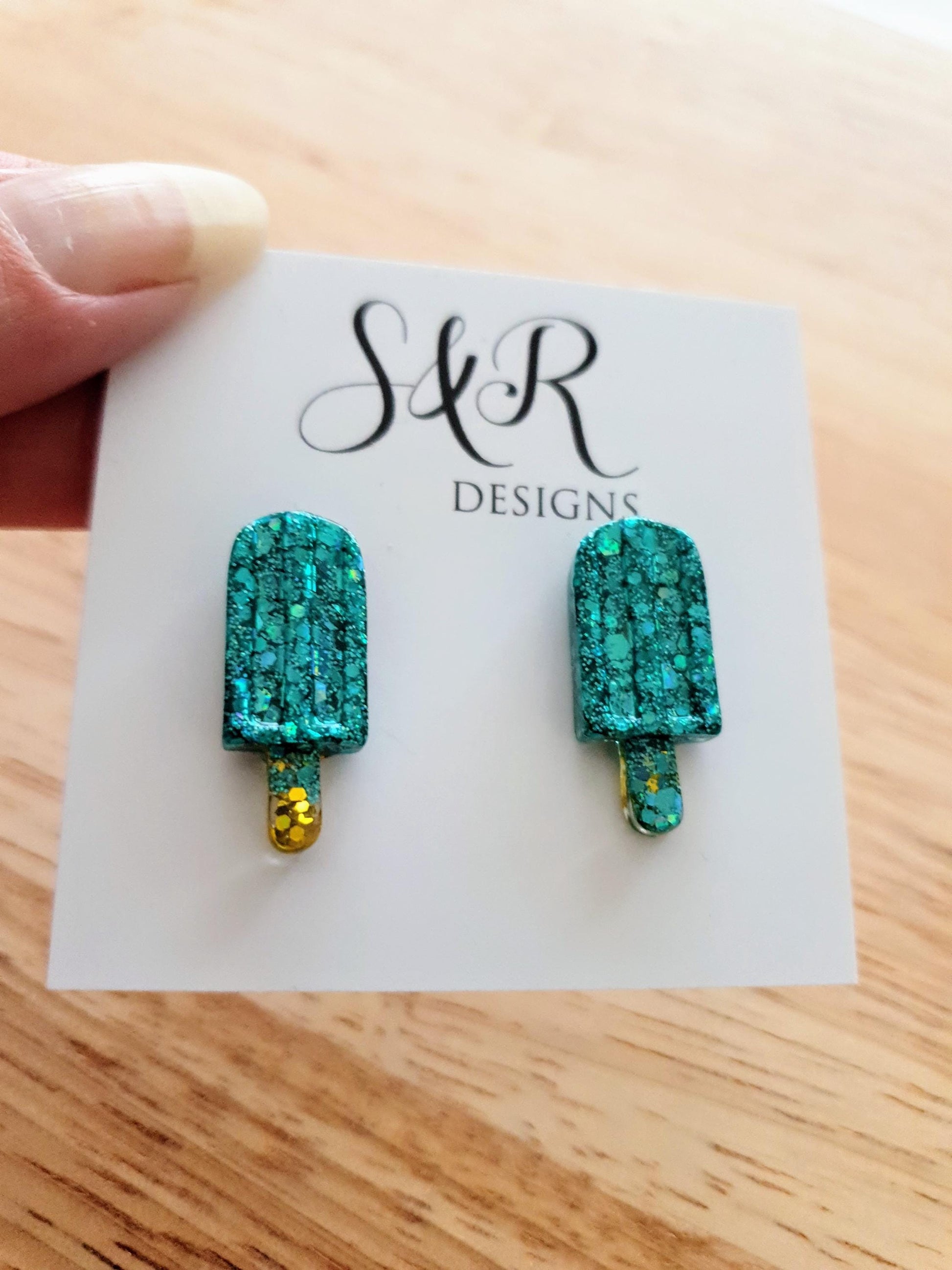 Turquoise Icy Pole Stud Earrings, Glitter Ice Cream Earrings, Statement Food Earrings